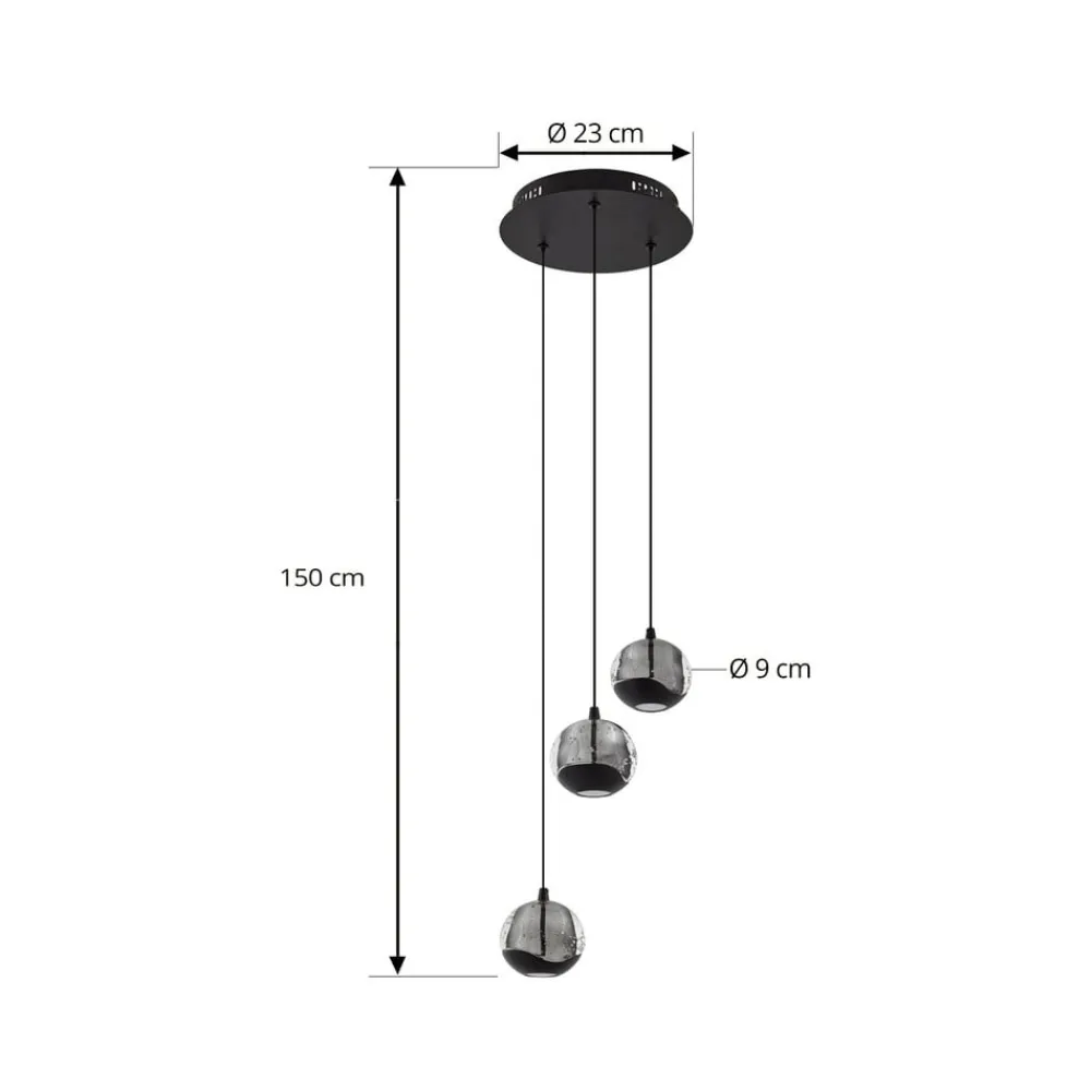 LED-pendellampen Hayley er fremstillet af højkvalitetsglas og metal og fås i sort, hvilket giver ethvert rum et elegant præg. Den integrerede LED-lyskilde giver et energibesparende og varmhvidt lys med en farvetemperatur på 3.000 Kelvin, der skaber en behagelig atmosfære i stuen eller spisestuen.