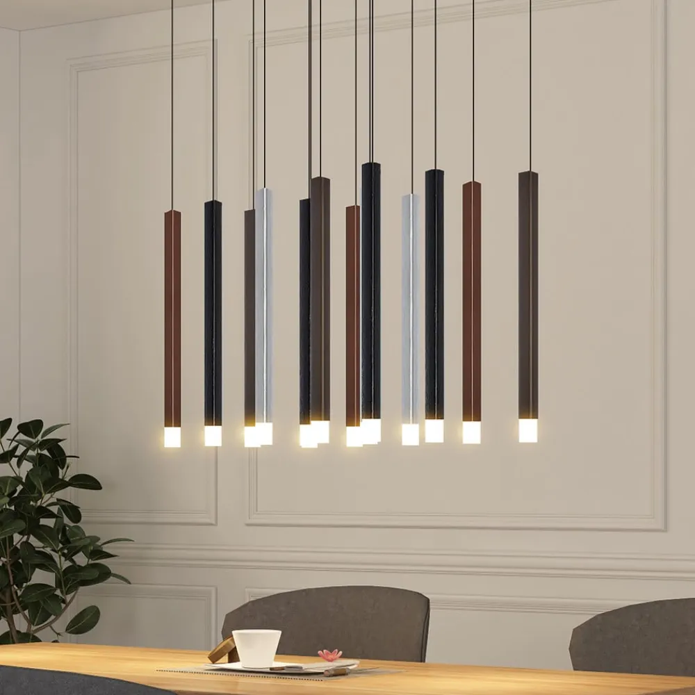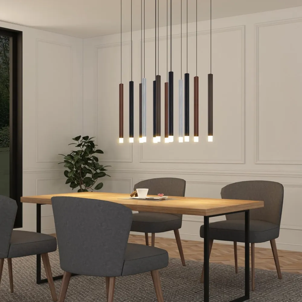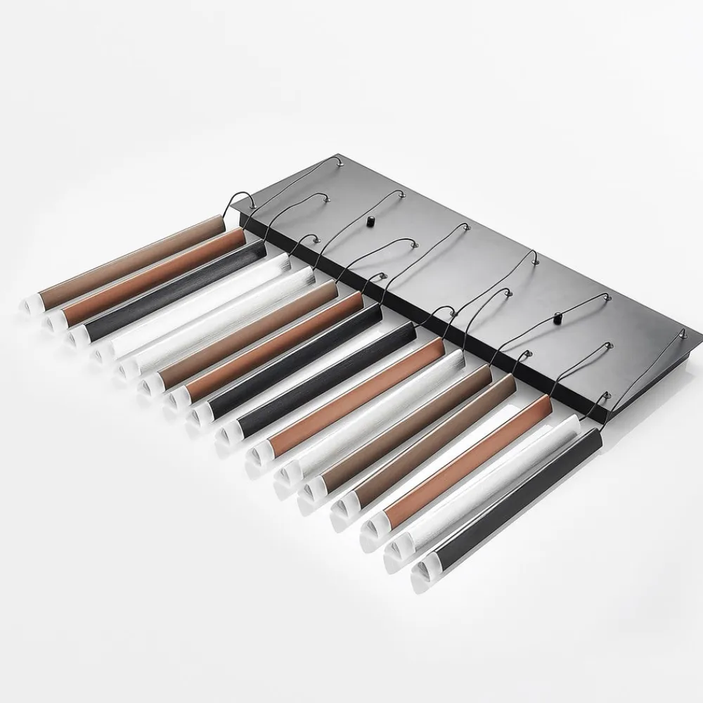 Stoika LED-pendellampe i høj kvalitet skinner i et usædvanligt design Stoika LED-pendellampen imponerer straks med sit 16-lampedesign. Loftbeslaget i mat sort fanger straks øjet med sin rektangulære form. De hængende lysstænger har fået forskellige farver, som harmonerer godt med hinanden og understreger armaturets særlige karakter. Hvis du vil bringe mere hygge ind i rummets atmosfære, kan du justere armaturets lysstyrke til dine egne behov på ingen tid. Takket være den 3-trins dæmpbare teknologi med integreret OFF-funktion kan dette armatur dæmpes til tre forskellige niveauer ved at trykke flere gange på vægkontakten: 100 %, 50 % og 10 %. IK08-slagfastheden karakteriserer Stoika som et robust armatur. 3-trins dæmp + off: Armaturet kan tændes og slukkes som normalt ved hjælp af en vægkontakt. Takket være 3-trins-dæmpningsteknologien med integreret slukfunktion kan det også dæmmes til tre forskellige lysstyrkeniveauer ved at trykke på kontakten flere gange: 100 %, 50 % og 10 %.