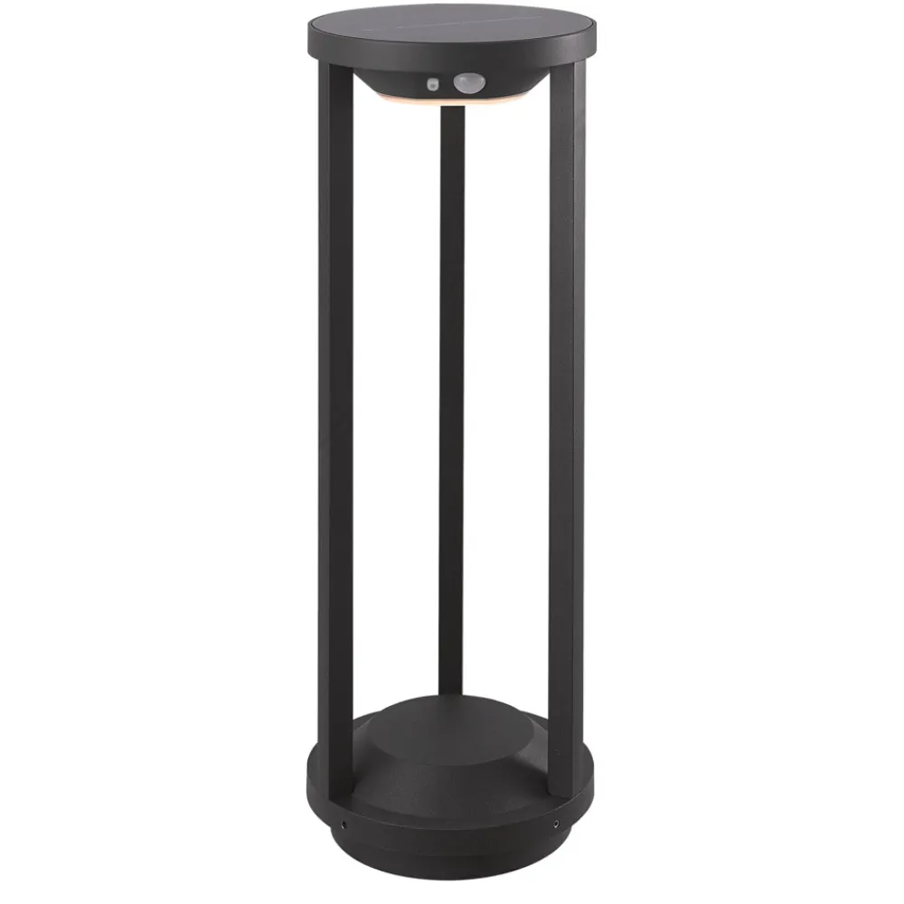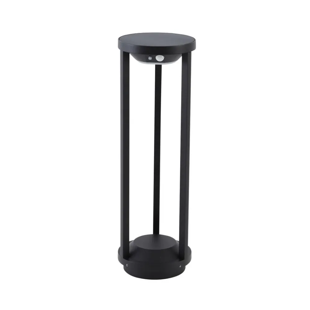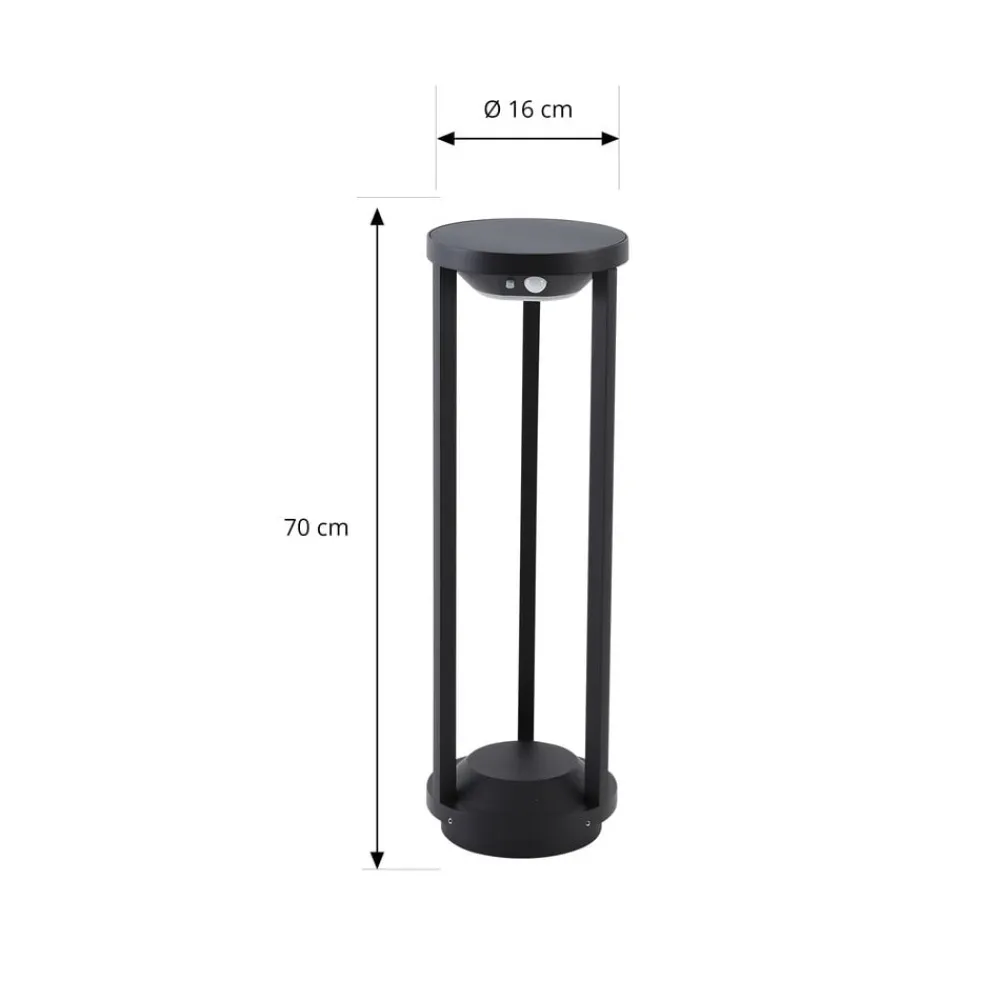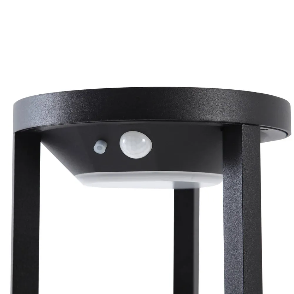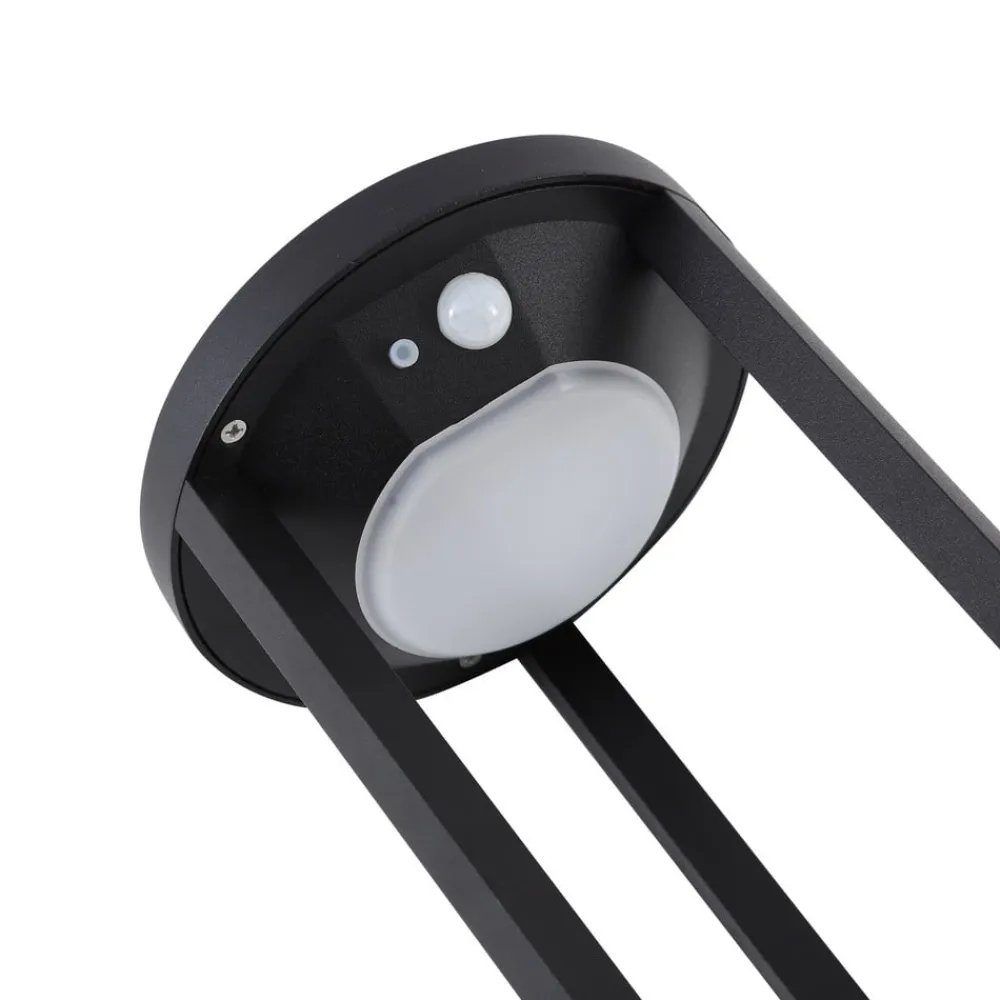 Nilea rund LED-gadelampe med bevægelsessensor Oplev elegancen og funktionaliteten i Nilea-gadelampen, som ikke kun sætter stilfulde accenter med sit moderne design og integrerede LED-lyskilde, men som også er prædestineret til udendørs brug takket være den høje kapslingsgrad på IP54. Denne runde, sorte vejlampe er specielt designet til indgangspartiet, haven eller terrassen og tilbyder en energibesparende belysningsløsning takket være solteknologi. Takket være solcelledriften kan vejlampen også placeres fleksibelt, hvor der er brug for lys. Med sit moderne look passer den nemt ind i mange udendørs områder. Den integrerede sensor registrerer bevægelse i omgivelserne og tænder automatisk lyset. Tekniske data bevægelsessensor: – Registreringsområde 3 -5 meter – Registreringsvinkel 55-110° – 3 belysningstilstande
