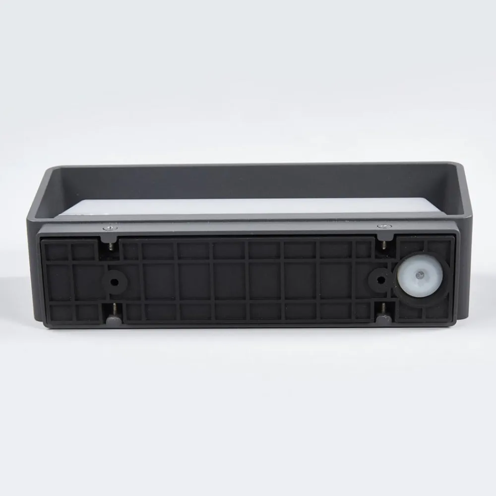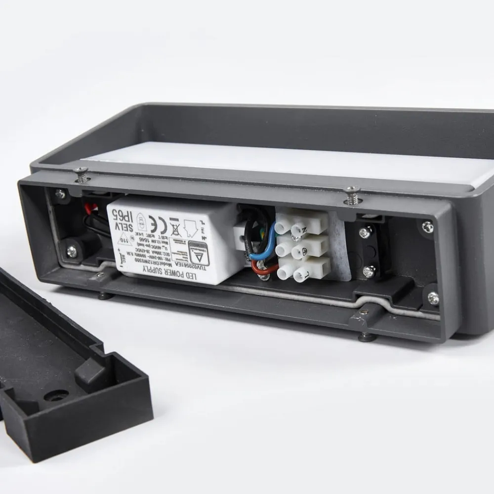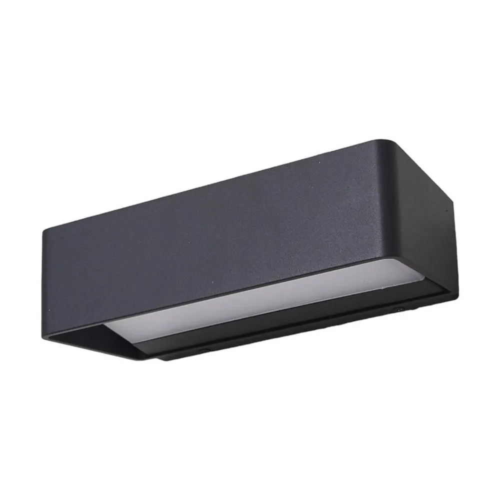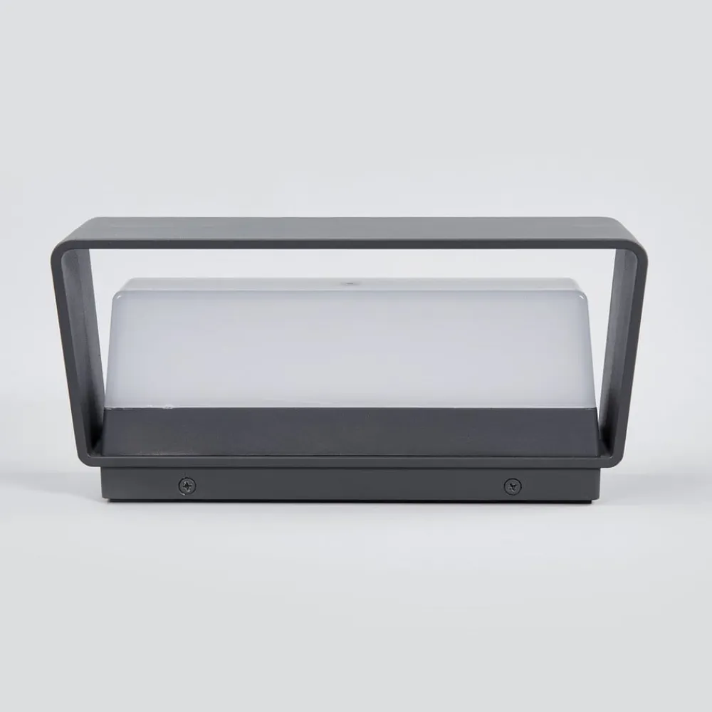 Midvig LED-væglampe til udendørs brug lavet af mørkegråt trykstøbt aluminium Midvig LED-væglampen passer godt sammen med moderne facader og moderne arkitektur. Armaturhuset er lavet af trykstøbt aluminium med en mørkegrå finish. Der er et hvidt plastdæksel over væglampens LED’er, og LED-teknologien sikrer et godt lysudbytte og et lavt strømforbrug.