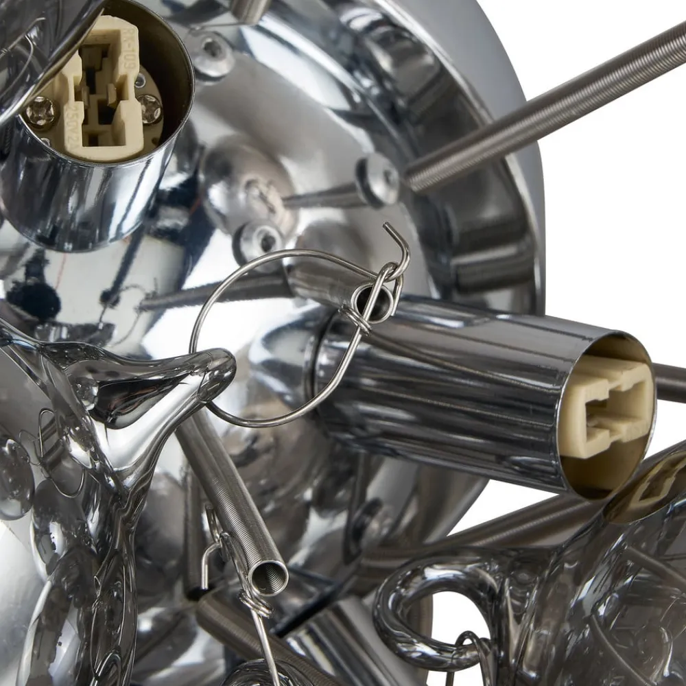 Loftlampe Diborah med røggrå glaskugler som lampeskærme