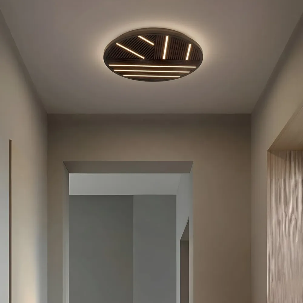 LED-loftlampe Orven kombinerer moderne design med naturlige accenter. Kombinationen af sort metal og et element i egetræ skaber en harmonisk æstetik, der passer perfekt ind i moderne boligrum. Den integrerede LED-lyskilde sikrer en jævn og energieffektiv belysning, mens den varmhvide lysfarve (3.000 K) skaber en behagelig atmosfære.