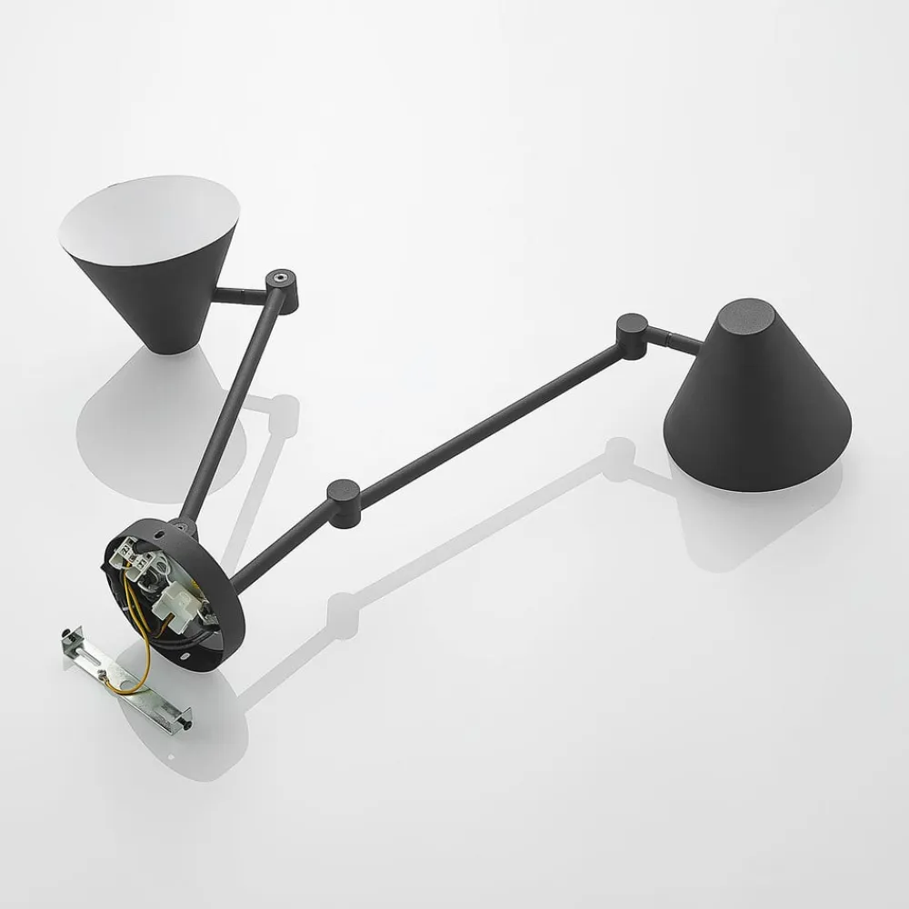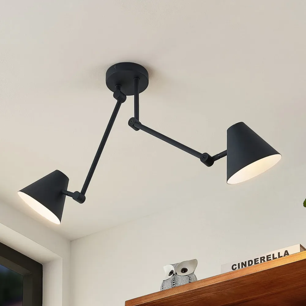 Phina er en praktisk loftslampe med en moderne karakter. Den sidder på et kompakt, rundt loftsophæng, hvorfra to slanke arme stiger op, som hver har to bevægelige led og ender i stilfulde lampeskærme. Armaturet består udelukkende af sort stål, mens det indvendige af skærmene fremstår i en harmonisk hvid farve. Det moderne design passer særligt godt i en stue eller spisestue og sætter diskrete accenter på flade lofter. Phina loftslampen kan monteres med E27-pærer, og de leddelte arme giver fleksibel belysning.