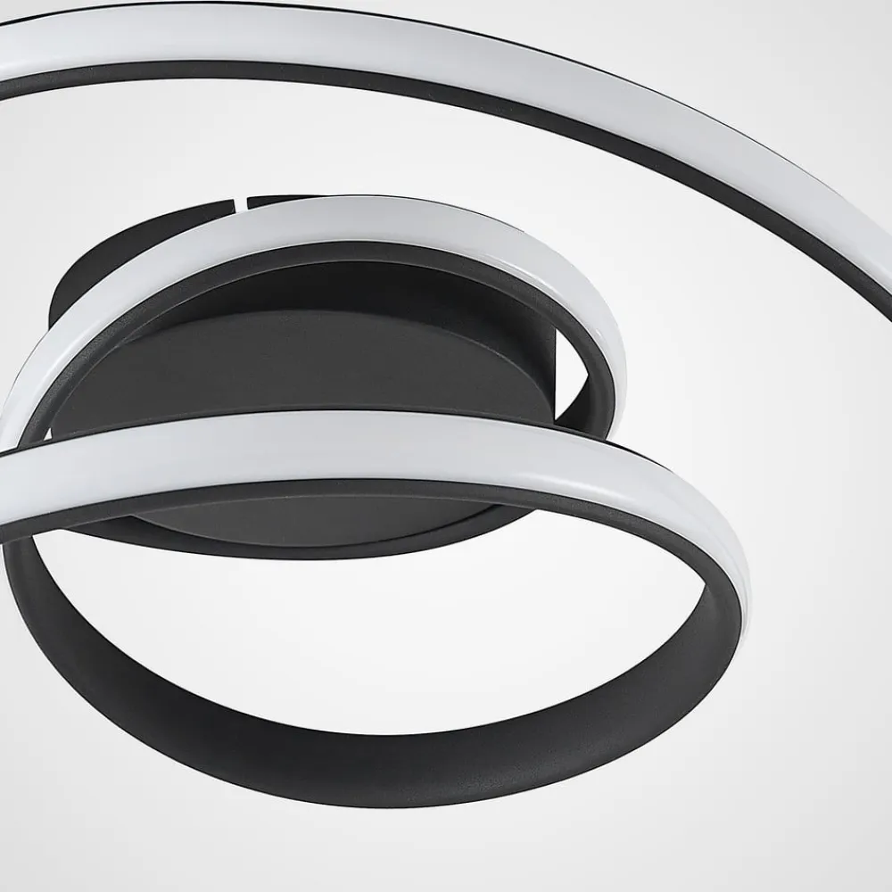 Spiralformet Sakina LED-loftlampe af jern i sandsort Sakina LED-loftlampen er ikke kun en pålidelig lyskilde, men også et interessant dekorativt objekt. Den er lavet af jern og består af en slank stiver, der snor sig om sig selv for at skabe en slående form. De faste LED’er løber langs denne stiver og skaber et varmhvidt lys og den perfekte stemning i en stue. En vægkontakt gør det muligt at tænde og slukke for lyset som normalt. Takket være 3-trins dæmpningsteknologien med integreret slukfunktion kan den også dæmmes til tre forskellige lysstyrker ved at trykke på kontakten flere gange: 100 %, 40 % og 10 %. Takket være sit friske design kan Sakina LED-loftlampen nemt integreres i mange forskellige indretningsstile og supplerer møblerne på en behagelig måde. Det elegante farveskema i sandsort giver den en attraktiv farvekombination, når den er tændt, og tiltrækker nysgerrige blikke