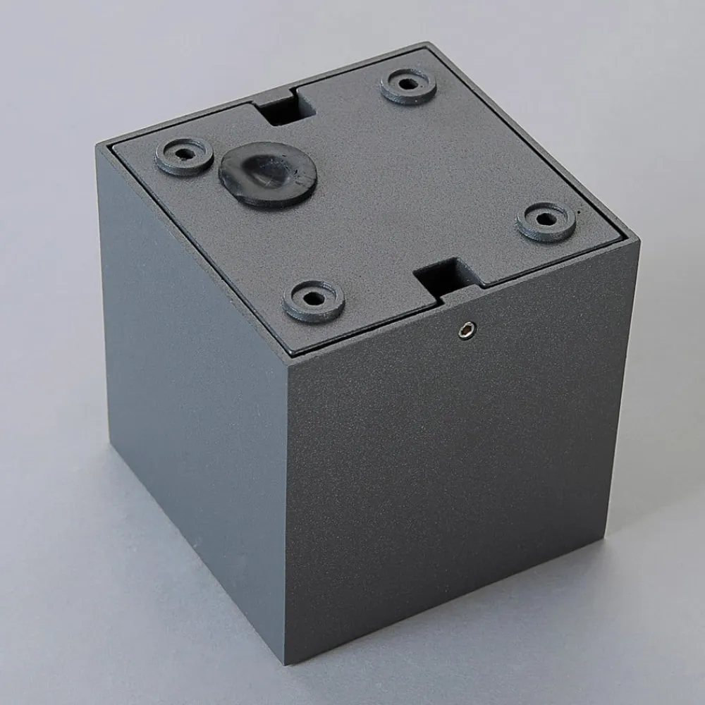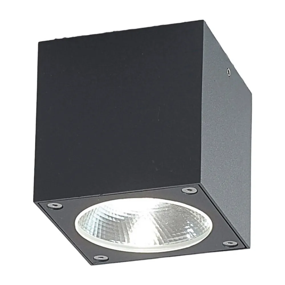 Cordy er en LED-loftslampe af aluminium i farven grafitgrå. Lukas er terningeformet og midt på lampen er pæren med integreret “Chip on Borad”-LED-teknologie, placeret. Det varm hvide tegner en form som et v og afgives nedad.