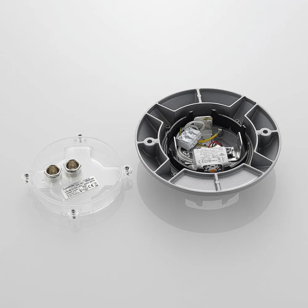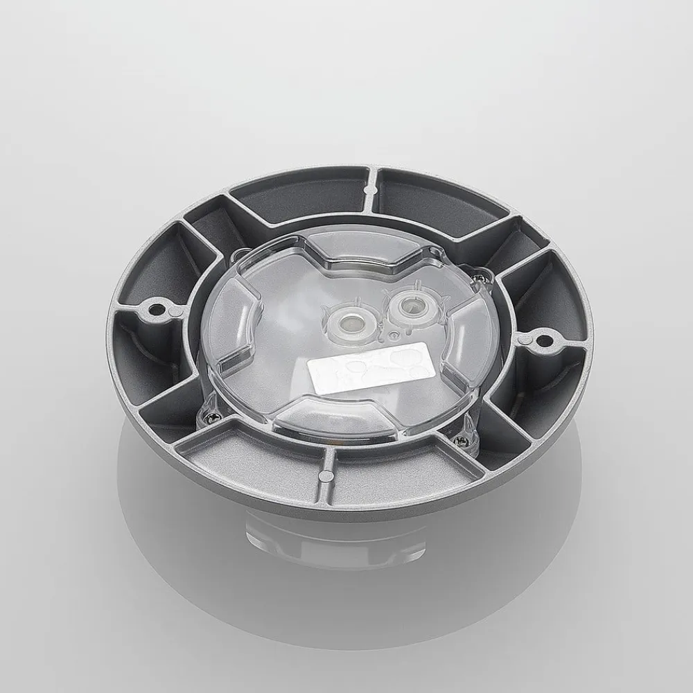 Denne lampe giver indtryk af at være en indbygget lampe, men den er beregnet til gulvmontering, hvilket naturligvis gør monteringen meget nemmere, og Jeffrey kan installeres på gulvet på et øjeblik. Overfladen på den runde lampe er holdt i en tidløs sølvfarve, og man kan gå på påbygningslampen, da den kan bære op til 500 kg. Med den høje kapslingsgrad IP67 og den højeste slagfasthedsklasse IK10 er den påbygningslampe med LED til gulvet i gården og haven en særlig robust lampe, der lover langvarig glæde. Overfladetemperaturen må højst være 75 °C.