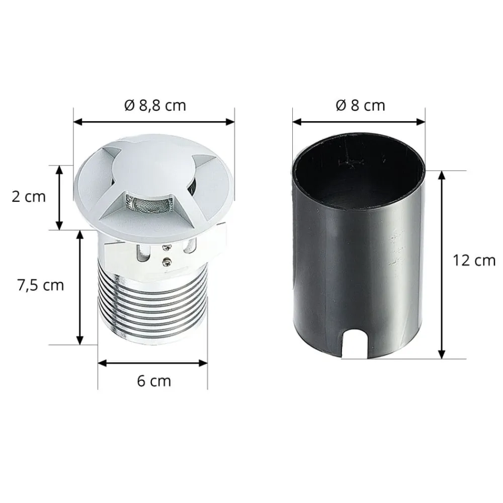 Milara er en meget nyttig lyskilde langs havegange og mindre indkørsler. Nedgravningslampen har en høj slagfasthed (IK08) og kan belastes med op til 500 kg, så den kan betrædes uden problemer og uden at blive beskadiget. Lampen til nedgravning drives af en energieffektiv GU10-pære (medfølger ikke), som i bedste fald er udstyret med LED-teknologi. Kapslingsgrad IP67 angiver en høj beskyttelse mod snavs og vand, så den uden problemer kan bruges udendørs. Lyset spreder sig blødt og blændfrit i omgivelserne, så det er velegnet til orientering efter mørkets frembrud.