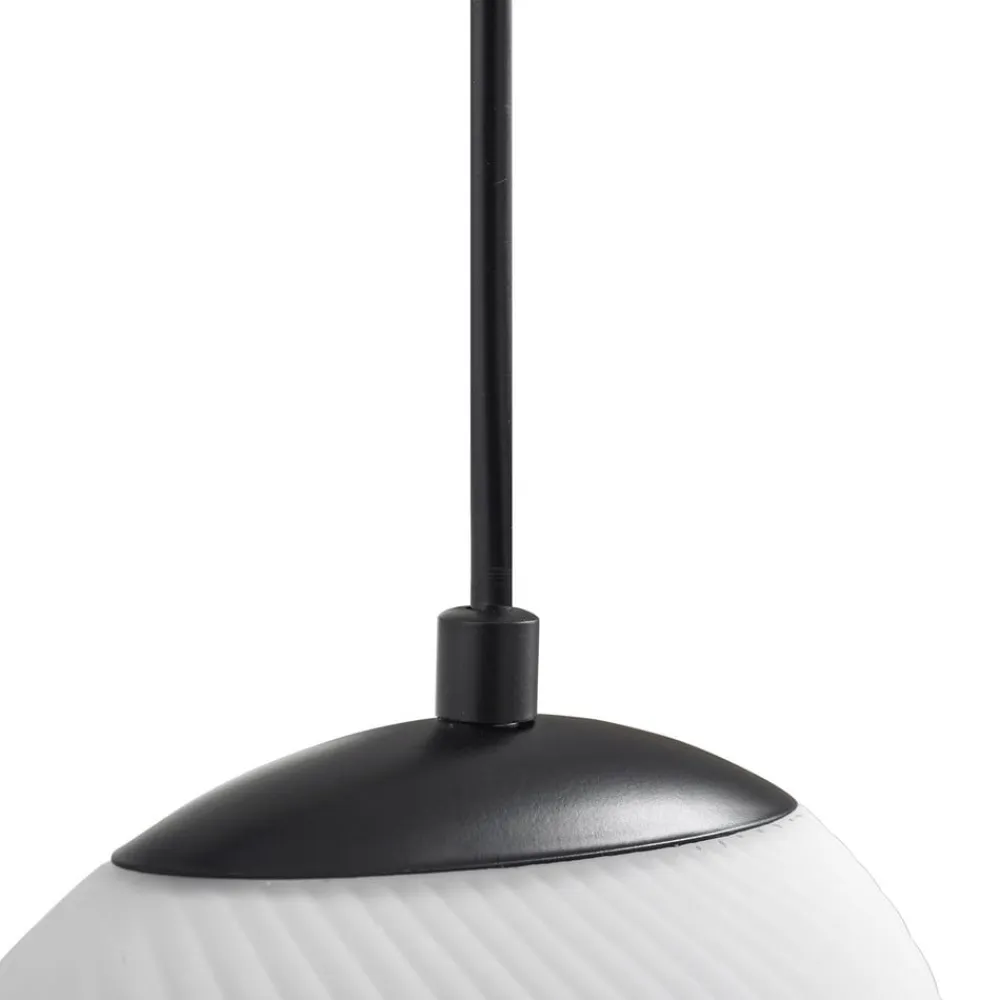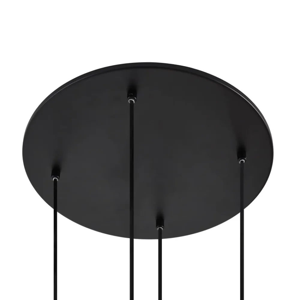 Lunelle hængelampe i design med 4 lyskilder, hvide glasskærme og sort baldakin af jern