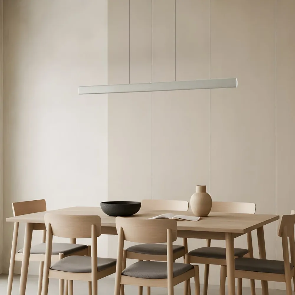 En anden fremragende egenskab ved denne hængelampe er den integrerede dæmpbarhed. Den medfølgende dæmper gør det muligt at regulere lysintensiteten individuelt og dermed skabe en behagelig atmosfære. Denne LED-hængelampe er ikke kun et stilfuldt designelement, men også en energieffektiv belysningsløsning, der opfylder moderne krav.
