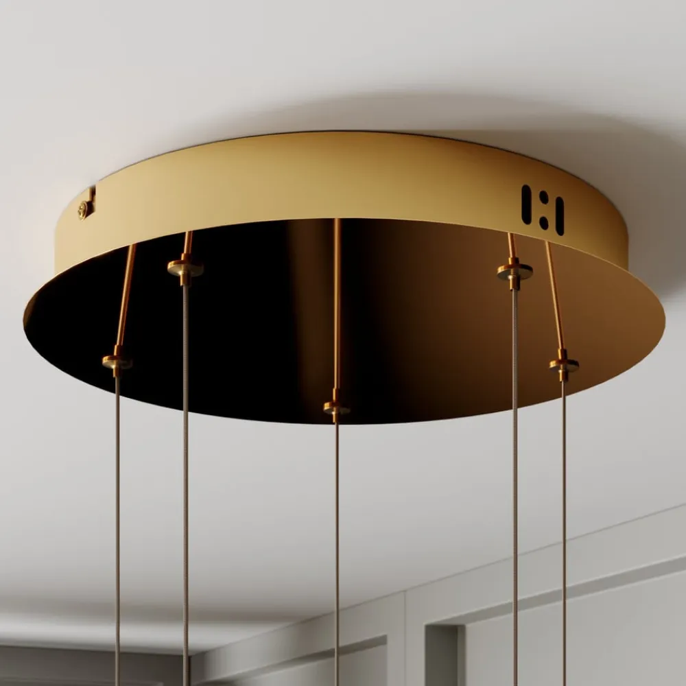 Lucande Pendellamper|Pendellamper>LED-pendellampe Hayley, Ø 30 cm, 5 lyskilder, guld, glas