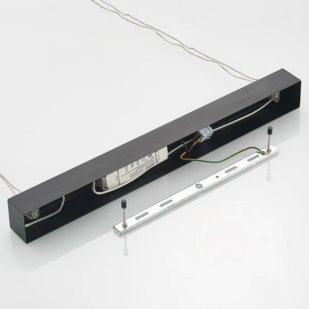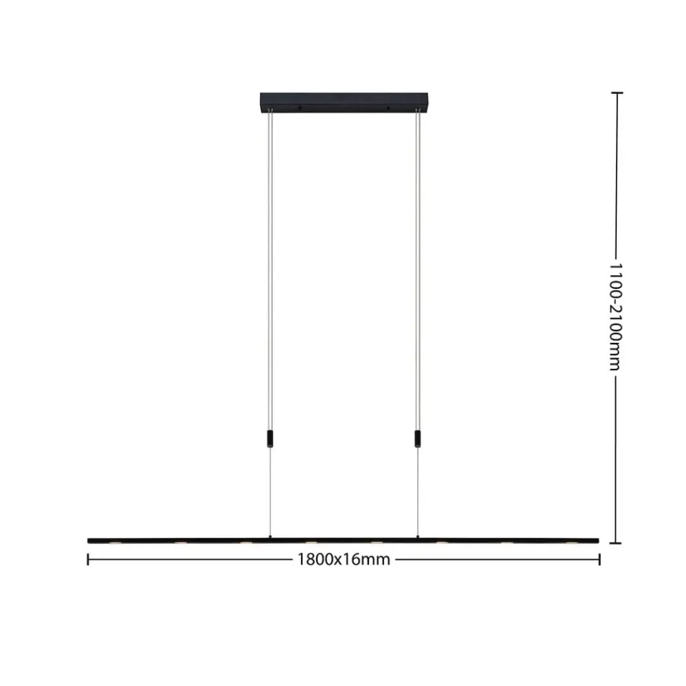 Stakato LED-hængelampe, højdejusterbar og dæmpbar via lyskontakt Et langt bord i spisestuen eller en ø eller disk i køkkenet – Stakato LED-hængelampen i et moderne design kan bruges til at belyse mange områder meget fleksibelt. Den matsortlakerede hængelampe er lavet af stål med et lyselement af aluminium og kan ikke kun justeres i ophænget med et par enkle trin, men lysstrålen kan også indstilles variabelt. Lyset kan skiftes til tre lysstyrkeniveauer ved hjælp af den eksisterende vægkontakt uden yderligere installation, blot ved at trykke på lyskontakten flere gange. LED’erne, der er installeret bag akrylafdækninger, spotlighter en varmhvid lysfarve. Lyset kan tændes og slukkes som normalt ved hjælp af en vægkontakt. Takket være 3-trins dæmpningsteknologien med integreret slukfunktion kan den også skiftes til tre forskellige lysstyrkeniveauer (100 %, 50 % og 10 %) ved at trykke på kontakten flere gange.