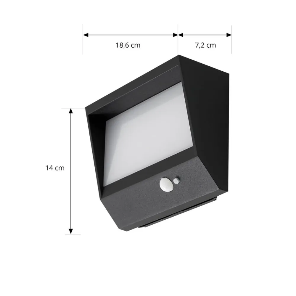 Dava kantet udendørs LED-væglampe med bevægelsessensor og soldrift Oplev elegancen og funktionaliteten i Dava udendørs LED-væglampe, som ikke kun bader din altan eller terrasse i et nyt lys, men også imponerer med sin høje kapslingsgrad på IP54. Dette moderne armatur er udstyret med en integreret LED-lyskilde, der giver energibesparende belysning og dermed kombinerer effektivitet med sofistikeret design. Takket være soldriften kan den placeres fleksibelt udendørs uden behov for en ekstern strømkilde. Uanset om det er til hyggelige aftener på altanen eller som en indbydende lyskilde i indgangspartiet – denne udendørs væglampe er en garanti for stemningsfuld og praktisk belysning. Med sit moderne look passer den problemfrit ind i ethvert udendørs design og sætter stilfulde accenter, der understreger karakteren af dit udendørs område. Den integrerede sensor registrerer bevægelse inden for en radius af 5 meter og tænder lyset automatisk. Der er flere belysningstilstande at vælge imellem. Tekniske data bevægelsessensor: – Registreringsområde 3 -5 meter – Registreringsvinkel 55-110° – 3 belysningstilstande