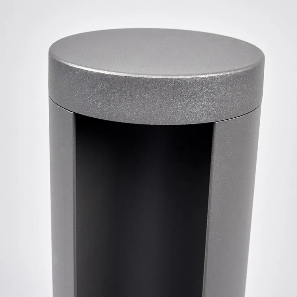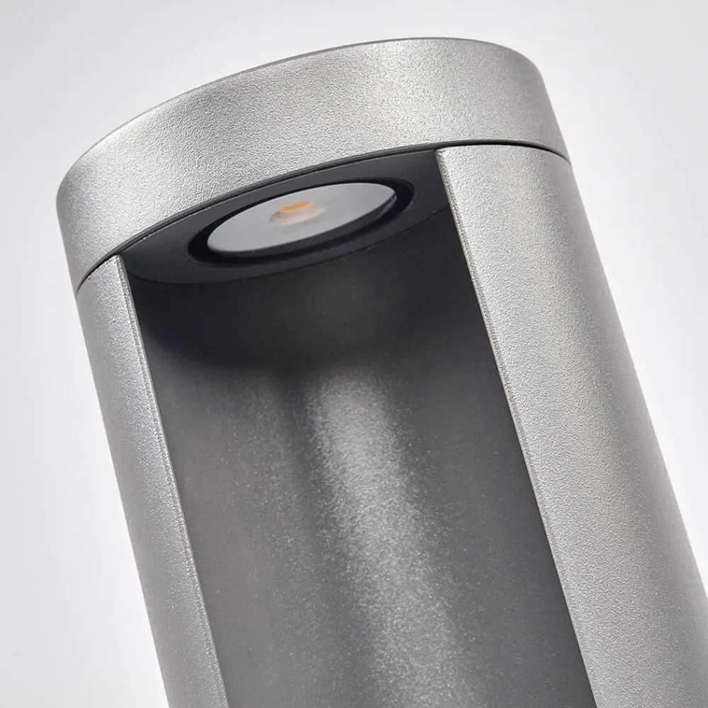 Jaron – LED-gadelampe i grafitgrå Denne vejlampe med et moderne look ser særligt stilfuld ud omkring haven og huset og lyser med en indirekte lyseffekt. Dette skabes af, at LED-pæren er placeret i den øverste del af det lige armatur og spotlighter nedad, hvorved lyskilden normalt ikke er direkte synlig, afhængigt af perspektivet. Derudover står LED-armaturet for særlig høj energieffektivitet og lang levetid, hvilket betyder, at de nyeste standarder er blevet fulgt, ikke kun visuelt, men også teknisk.