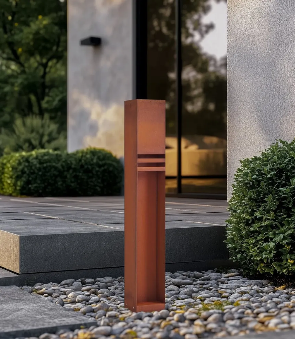 Oxido LED-gadelampe – den markante ledsager til udendørsarealer i cortenstål Oplev lysets transformerende kraft med Oxido LED-gadelampen, som ikke kun forbedrer dit udendørsareal med et moderne design i cortenstål, men også giver energibesparende belysning takket være den integrerede LED-lyskilde. Denne vejlampe er specielt designet til terrassen og skaber en atmosfære, der er både indbydende og funktionel. Med sit stilfulde udseende og effektive lysudbytte er Oxido LED-gadelampen et ideelt valg for alle, der sætter pris på æstetik og bæredygtighed.