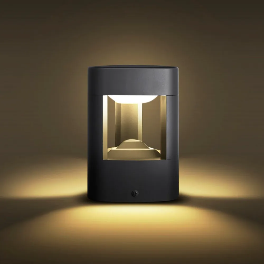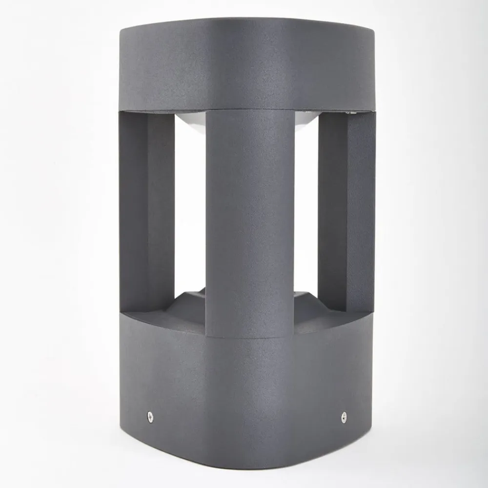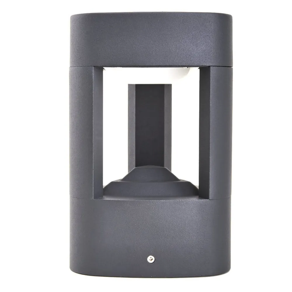 Robust Pirron LED-sokkellampe af massivt aluminium Serien af Pirron LED-sokkellamper kan anbefales til alle, der ønsker at skabe et moderne og energibesparende miljø i haven og på ejendommen. Den kantede lampekrop er lavet af antracitmalet aluminium. Indeni er der integreret en chip med LED’er af mærket Epistar, som giver en behagelig belysning med en farvetemperatur på 2.700 Kelvin. Lyset spotlightes udad gennem de aflange åbninger på alle sider, men lyskilden er placeret i den øverste del af armaturet, hvilket skaber smukke indirekte lyseffekter omkring huset eller på stier i haven. LED-sokkellampen er også optimalt beskyttet mod vejret med en kapslingsgrad på IP54.