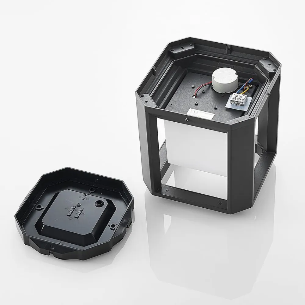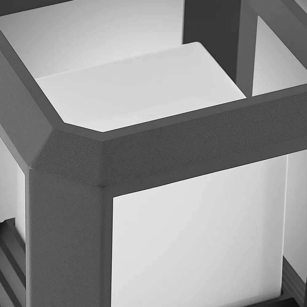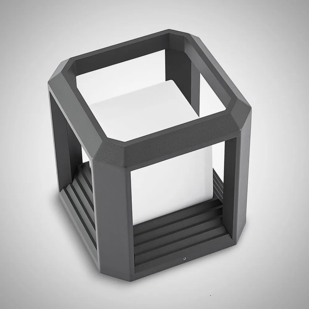 Moderne LED-sokkellampe Serenella Moderne og usædvanlig i formen, Serenella LED-sokkellampe giver god belysning og er et blikfang på samme tid. Takket være den kantede form er den ideel til montering på stolper, vægge eller trapper. Serenella kan også bruges dekorativt på terrasser. Den opalhvide, kubeformede skærm udsender lyset fra de integrerede LED’er jævnt og blændfrit til alle sider.