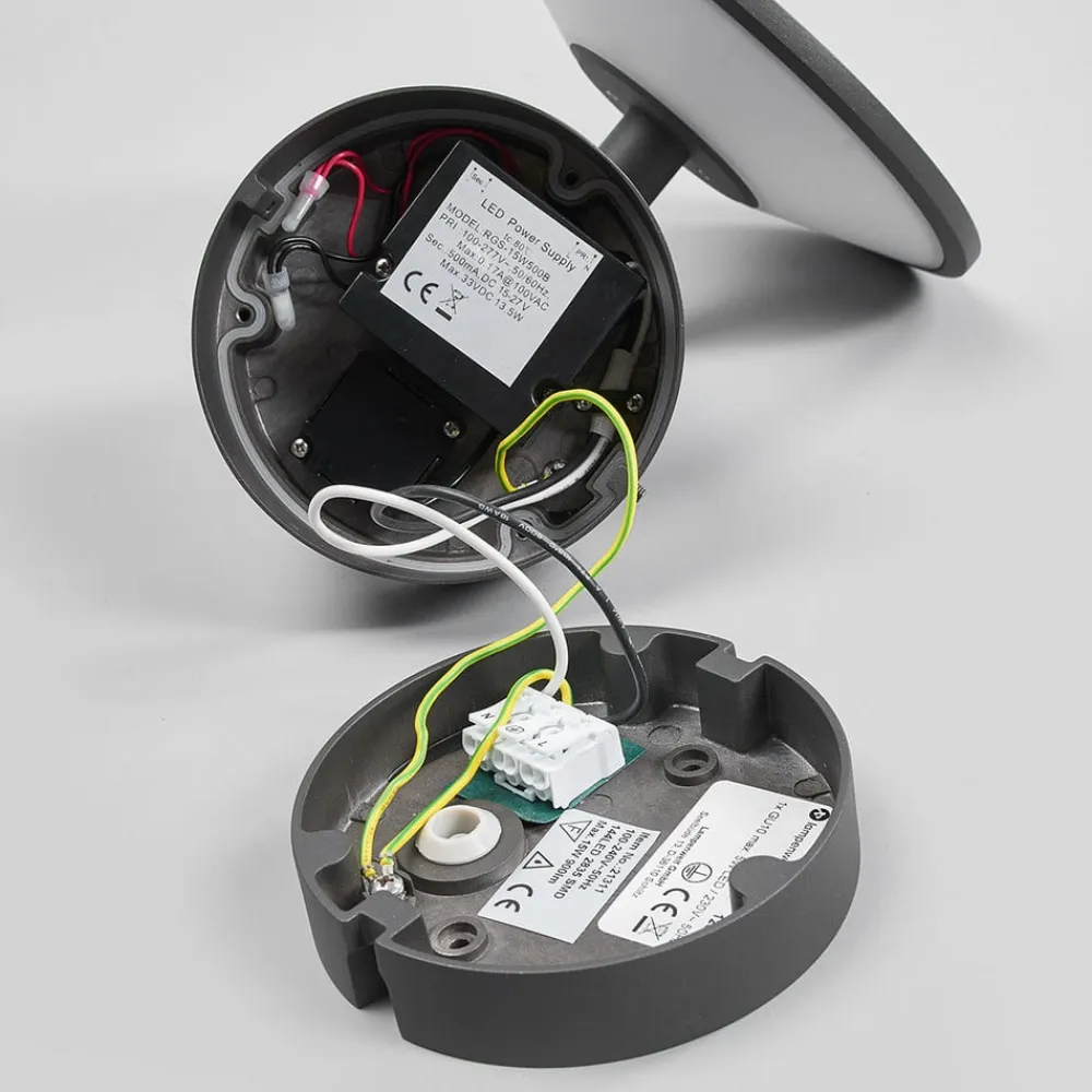 Sensorstyret udendørs LED-væglampe Fenia med IP54 Udendørs LED-væglamper er kendt for deres lave strømforbrug, men kraftige lysudbytte. Det gælder også Fenia, som er lavet af mørkegråt aluminium, har en rund form og sender lys ned mod jorden. Det sikrer, at der altid er lys til at orientere sig, selv efter mørkets frembrud. Den integrerede bevægelsessensor er en stor fordel, da lyset kun tændes, når en person har brug for det, fordi sensoren registrerer bevægelse – 120° registreringsvinkel – Rækkevidde 6 – 10 m – Lysets varighed 8 s – 10 min (justerbar) – Installationshøjde 0,5 – 2,5 m