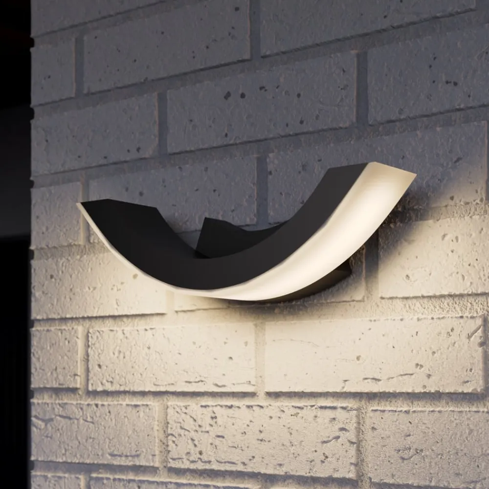 Elegant udendørs LED-væglampe Half med nedadrettet lysstråle Lyset fra denne udendørs LED-væglampe, hvis aluminiumsramme er malet grafitgrå, er udelukkende rettet nedad. Der er en hvid diffusor på undersiden, som beskytter pærerne og fordeler lyset mere blødt. Som et mærkevareprodukt fra Epistar er SMD-LED’erne ikke kun langtidsholdbare, de bruger også næsten ingen energi. Det gør det muligt at skabe en udendørs belysning, der skåner pengepungen, fordi elregningen for udendørs belysning holder sig på et lavt niveau.