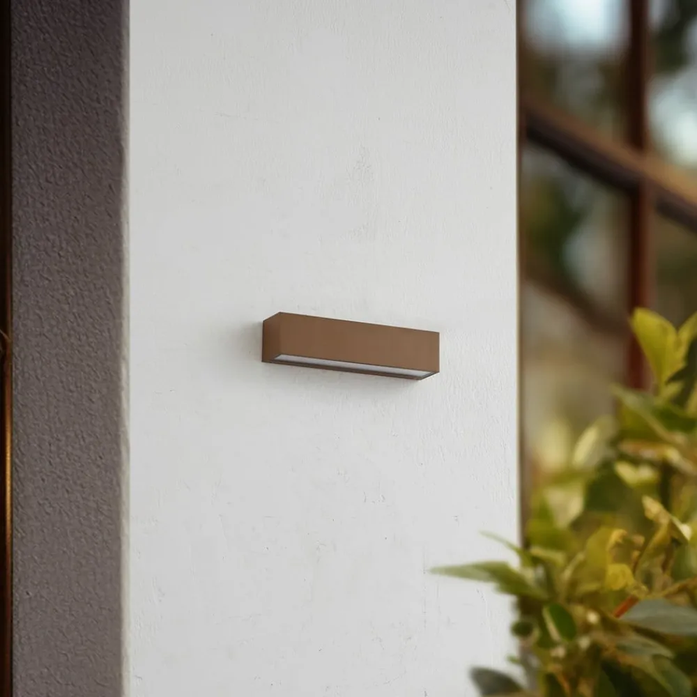 Oplev udendørs LED-væglampe Lengo, der med sin stilfulde brune farve og moderne design ikke kun er æstetisk tiltalende, men også er perfekt til udendørs brug takket være sin høje kapslingsgrad IP65. Den integrerede LED-lyskilde sikrer en energieffektiv belysning, der skaber en stemningsfuld atmosfære i både stuen, spisestuen og entreen. Med Lengo bringer du ikke kun lys ind i dine rum, men sætter også et designmæssigt statement.
