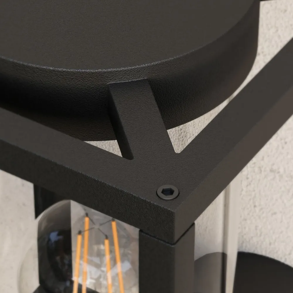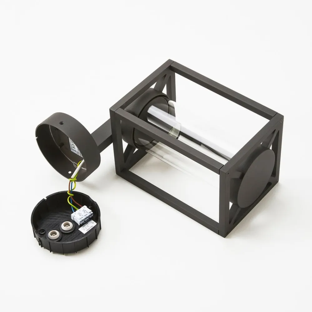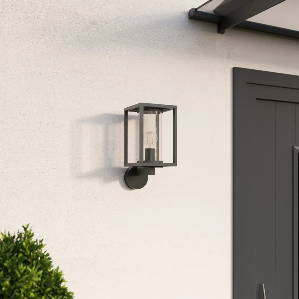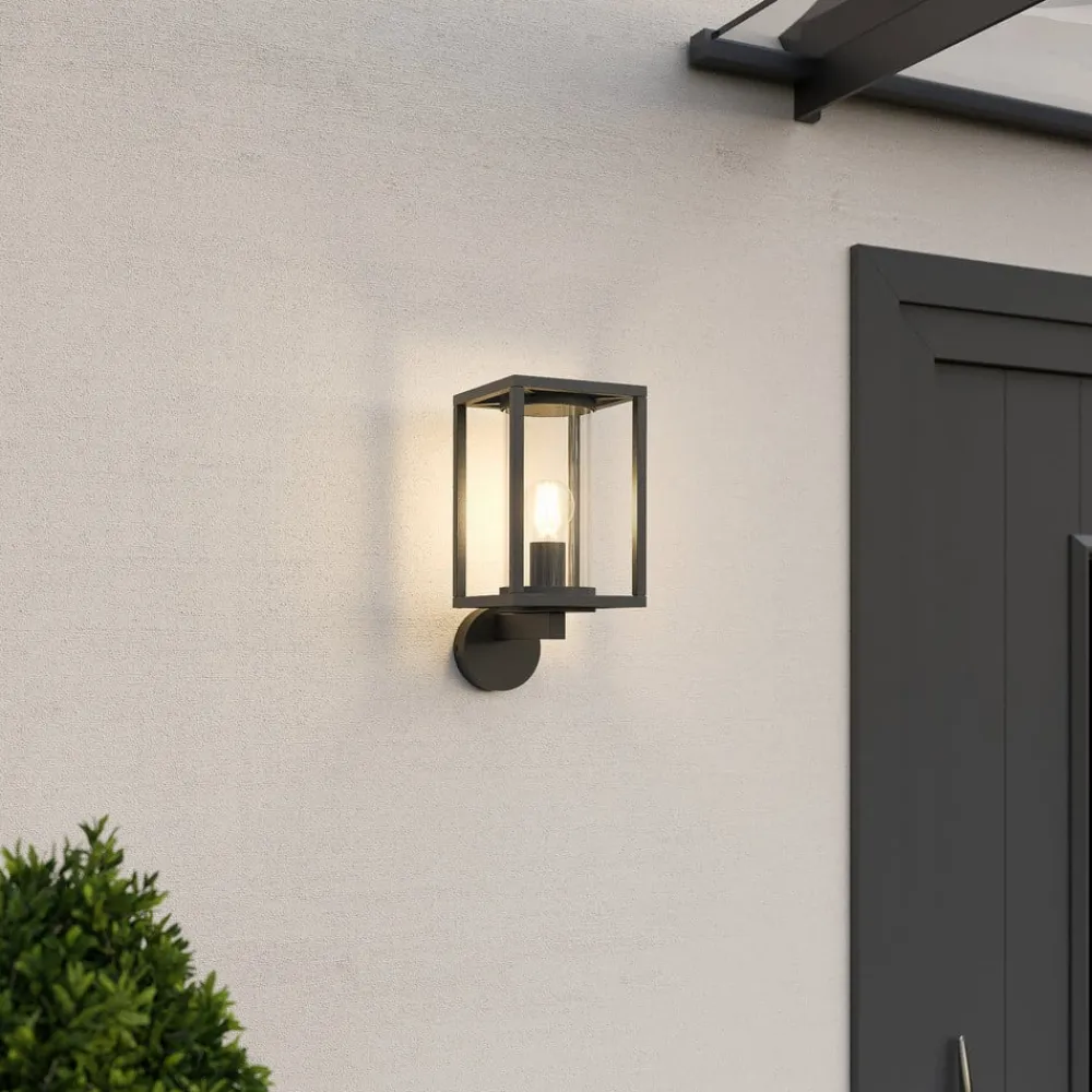Pålidelig udendørsbelysning – Ferda udendørs væglampe af aluminium Designet af Ferda udendørs væglampe kombinerer kantede og runde former. Lampeskærmen her er åben og formet som en moderne, kantet lygte. Inde i og omkring pæren er der en gennemsigtig glascylinder, der giver pålidelig og klar belysning ved at udsende lys til alle sider. Det giver sikkerhed ved husets indgangsparti og skaber også en smuk lyseffekt, f.eks. langs husets facade.