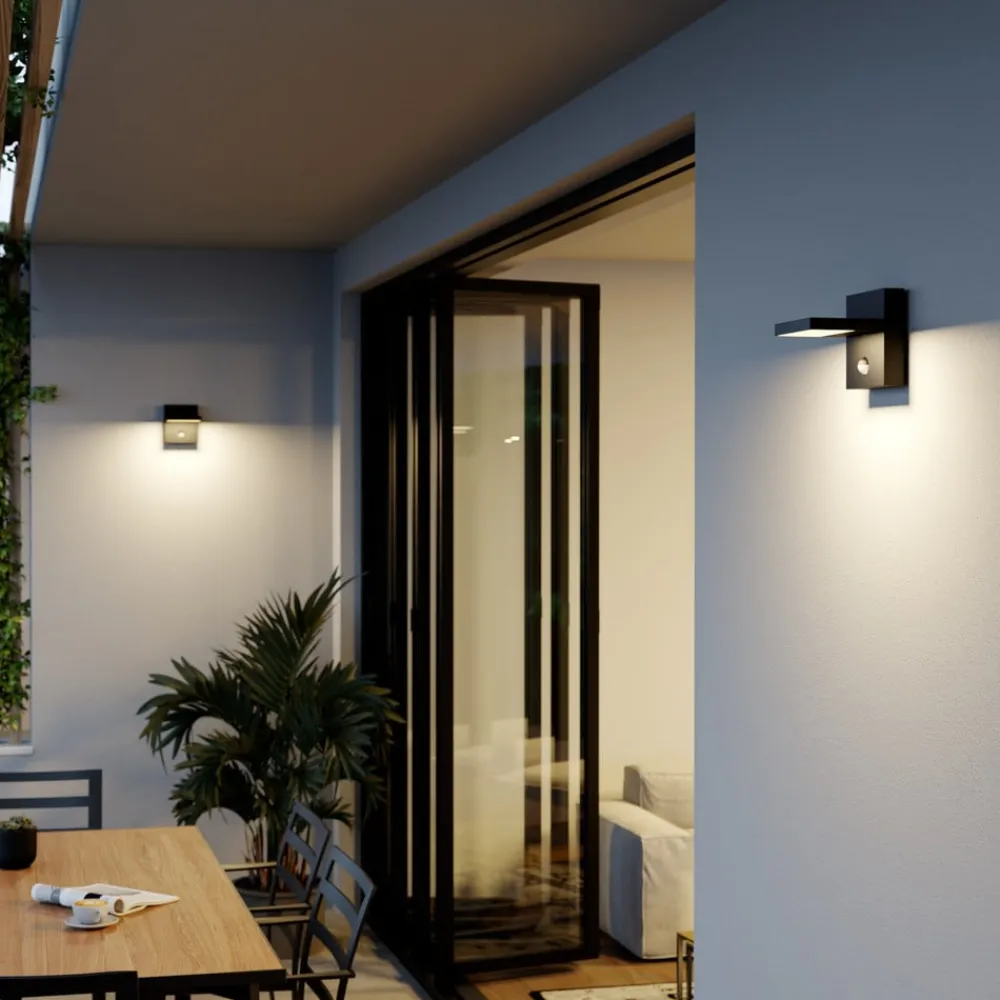 Lucande Væglampe Med Sensor|Terrassebelysning>udendørs LED-væglampe Silvan, antracit, sensor, IP54