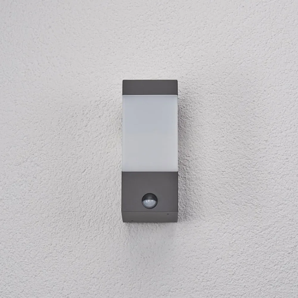 Lucande Væglampe Med Sensor|Væglamper>udendørs væglampe Kiran, sensor, grå, IP44, E27