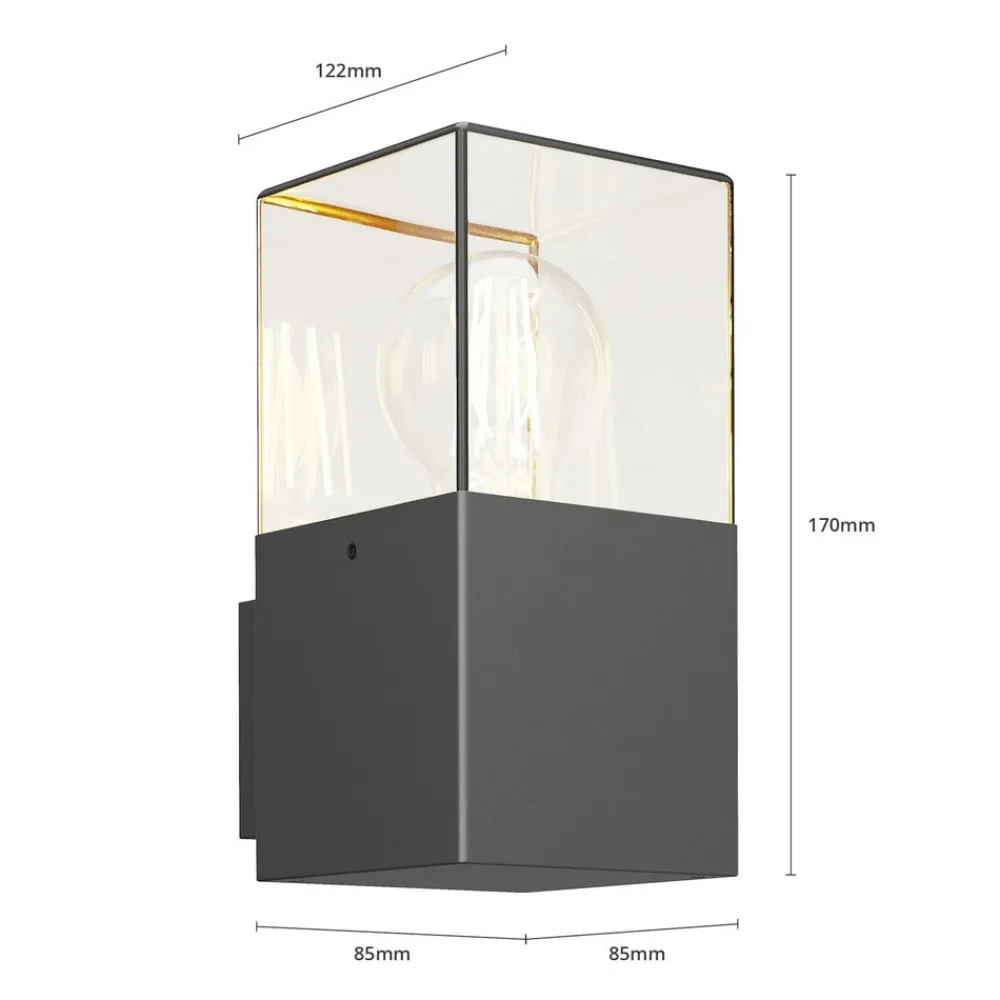 Den moderne udendørs væglampe Keke er ideel til udendørs brug, og har et harmonisk look, der ser rigtig flot ud på udvendige facader, ved husets indgangsparti eller på andre vigtige steder i dit udendørs område. Lampen Keke byder samtidig på et pålideligt lys, der både bidrager til sikkerheden og en effektfuld belysning. Dens hus er lavet af grafitgrå aluminium med en røggrå plastskærm.