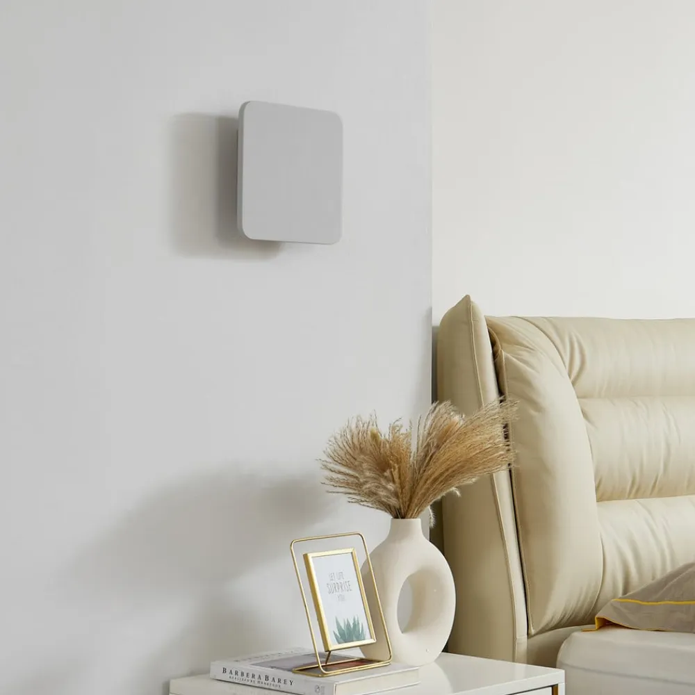 Hvid Elrik LED-væglampe Elrik LED-væglampen har et meget enkelt design. Den kantede, kompakte krop er holdt i en ren hvid farve. På bagsiden er der integreret et varmt hvidt LED-modul, hvorigennem lyset sendes ind mod væggen og skaber en indirekte, fremhævet belysning – kan også installeres som loftslampe
