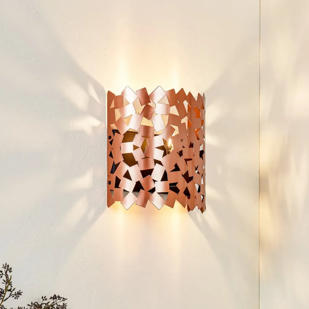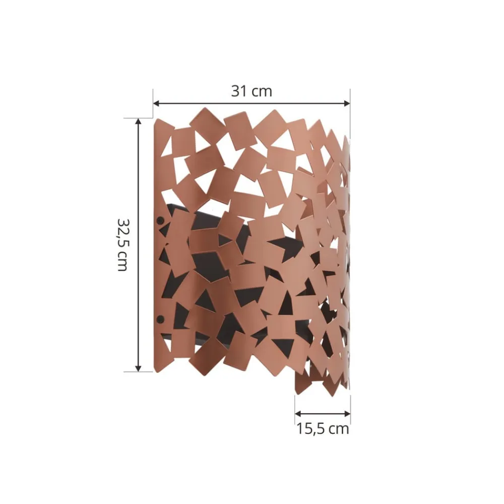 Kobberfarvet Aeloria-væglampe med markant designet lampeskærm Lad denne væglampe lyse vejen op for dig. Alle Lucande-mærkets kvaliteter og særlige egenskaber er samlet i denne lampe. Lyset kan dæmpes ved hjælp af en ekstern lysdæmper og dæmpbare lyskilder. Væglampens attraktive udseende giver en række anvendelses- og kombinationsmuligheder og kan effektivt integreres i dit moderne interiør. Lampen er kobberfarvet og imponerer med kvaliteten af det anvendte jern. Den er udstyret med en E27-fatning. Lampen vil komme til sin ret i dit område og skabe en behagelig atmosfære. Lampens flotte udseende giver alle områder et flot præg, som praktisk talt kan harmonere med din eksisterende indretning. Du vil ikke kunne undvære denne lampe.