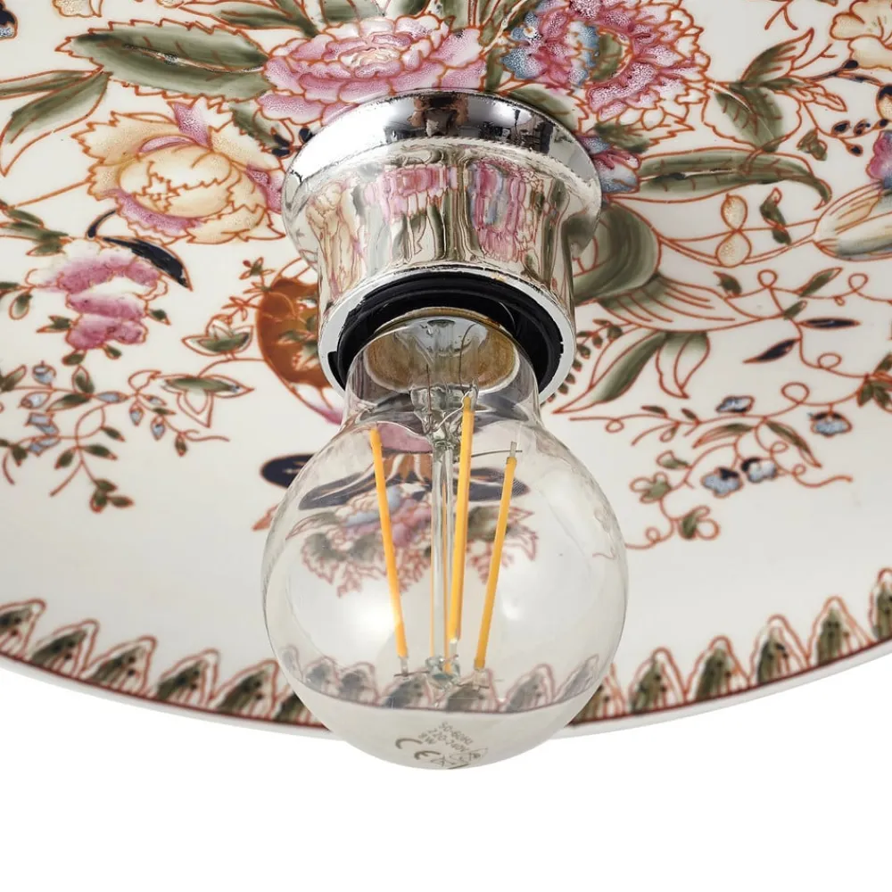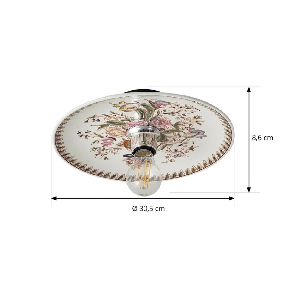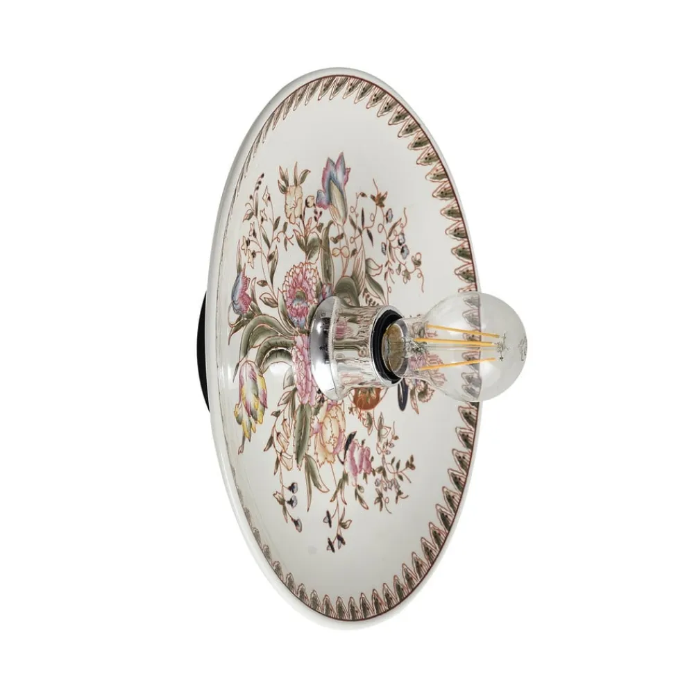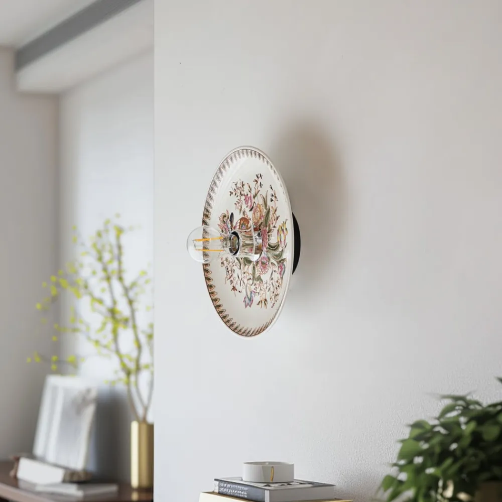 Faelira væglampe: vintagecharme til opholds- og spiseområder Faelira væglampen kombinerer traditionelt design med et strejf af farve for at skabe en unik atmosfære i ethvert rum. Med sit tiltalende mønster og den harmoniske farvekombination af hvide og rosa accenter passer den perfekt ind i vintagestilen og er et blikfang i stuer, spisestuer og entréer. Selvom der ikke medfølger en dæmper, kan lysets intensitet justeres efter ønske ved at tilslutte den til en ekstern dæmper for at skabe den ønskede stemning. Væglampens keramiske overflade afspejler ikke kun kvalitet og holdbarhed, men bidrager også til en hyggelig lysfordeling – Faelira-væglampen kan også bruges som loftlampe