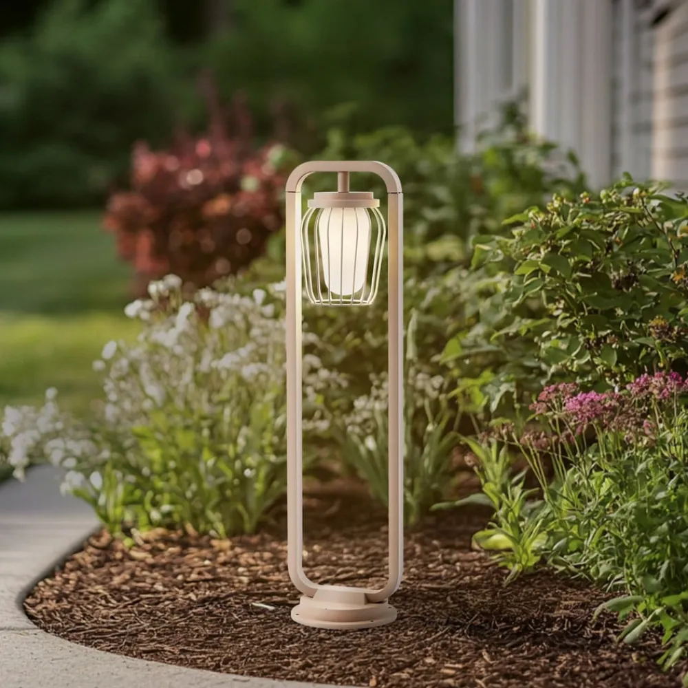 Beige vejlampe Chandan: Robust elegance til udendørs brug