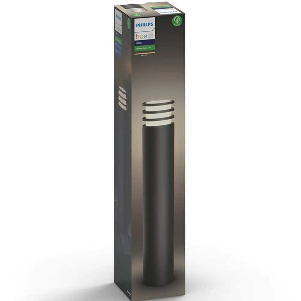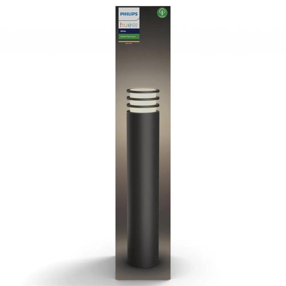 LED-gadelampe Lucca er en smart belysning til moderne udendørsarealer, der takket være integrationen i et eksisterende Philips Hue Smart Home-system muliggør individuel og bekvem lysstyring med din egen smartphone eller tablet. Via den gratis Hue-app kan du ud over forskellige lysstyrker også indstille en timerfunktion, så lampen tændes, inden du ankommer til ejendommen, for at sikre en sikker belysning.