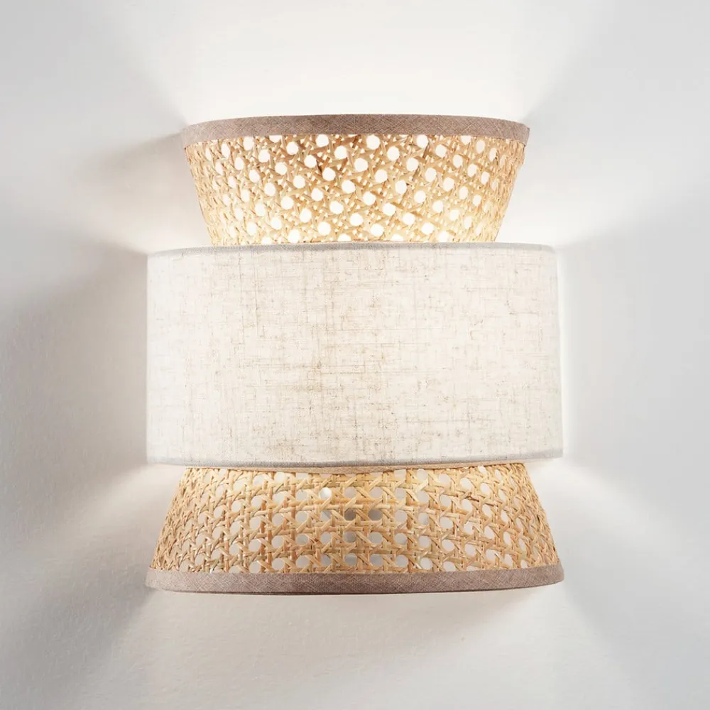 Væglampe Gazebo kombinerer naturlige materialer som rattan og stof med et tidløst design i farverne natur og beige. Denne kombination skaber et harmonisk udseende, der passer perfekt ind i forskellige boligområder som stuen, spisestuen, gangen eller soveværelset. Den omhyggelige forarbejdning af materialerne understreger den høje kvalitet og giver ethvert rum en varm, indbydende atmosfære.