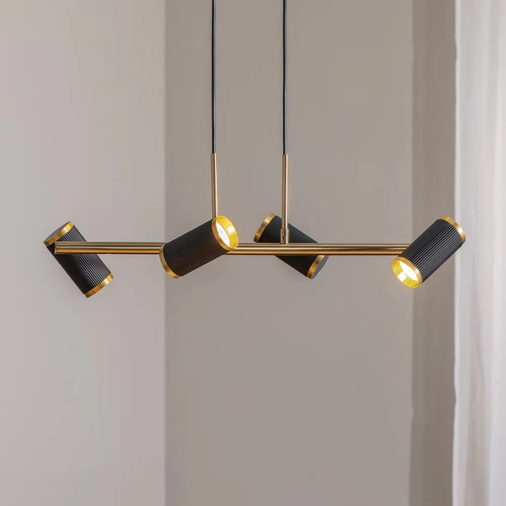 Lucea Hængelampe Lume sort/guld antik længde 66 cm 4 lyskilder metal