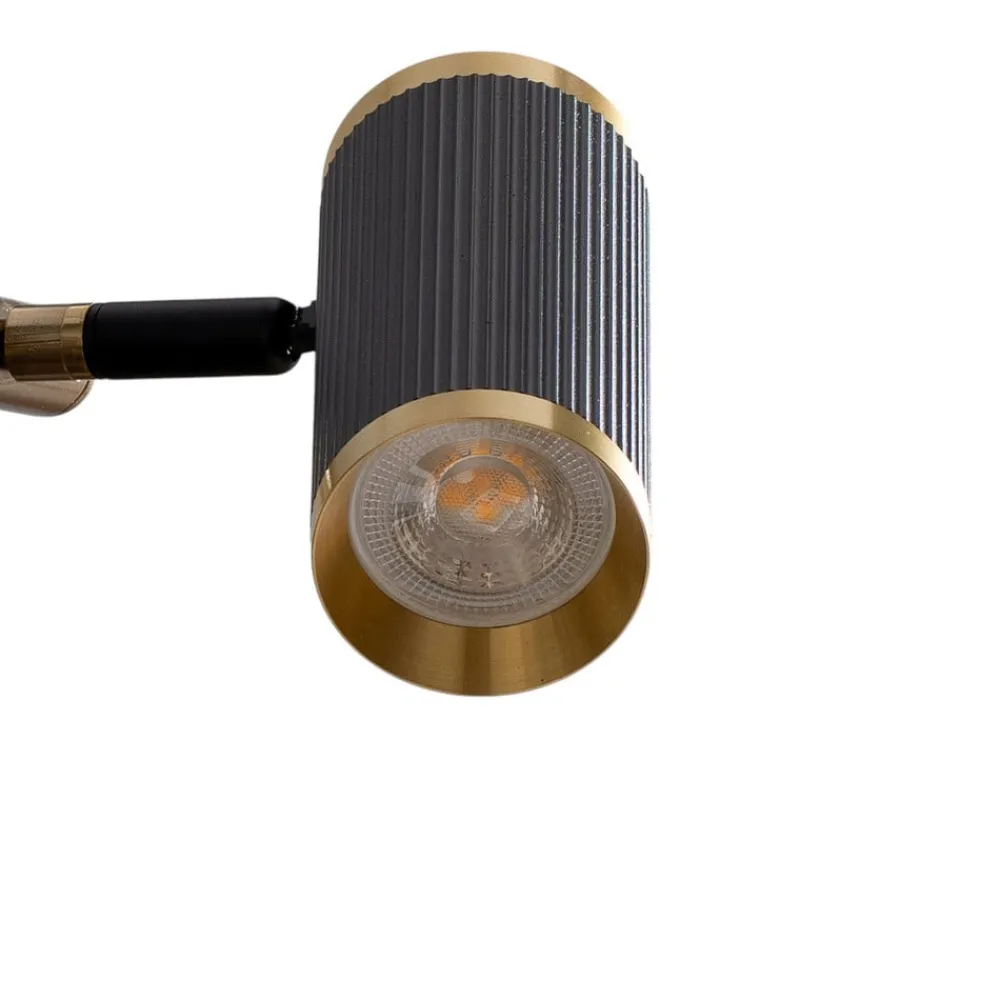 Lume hængelampe i sort og antik guld med fire justerbare spots Funktionelt overbevisende og designet i en trendy farvekombination af sort og antik guld beriger Lume hængelampen stuer og opholdsrum. Fire spots er fastgjort på siden af en vandret stang og kan rettes mod det ønskede område.