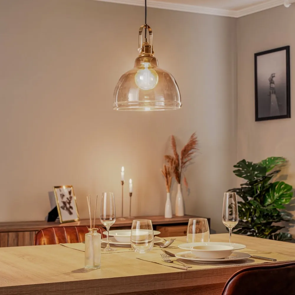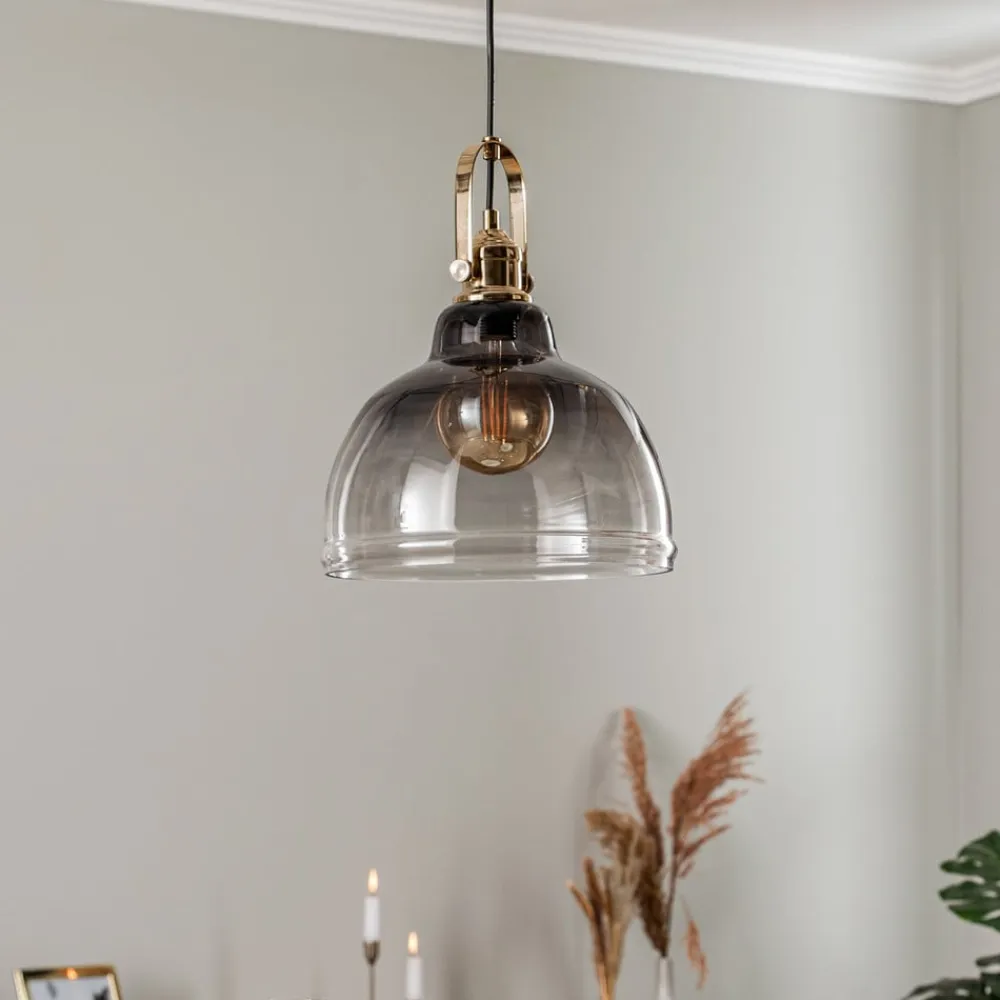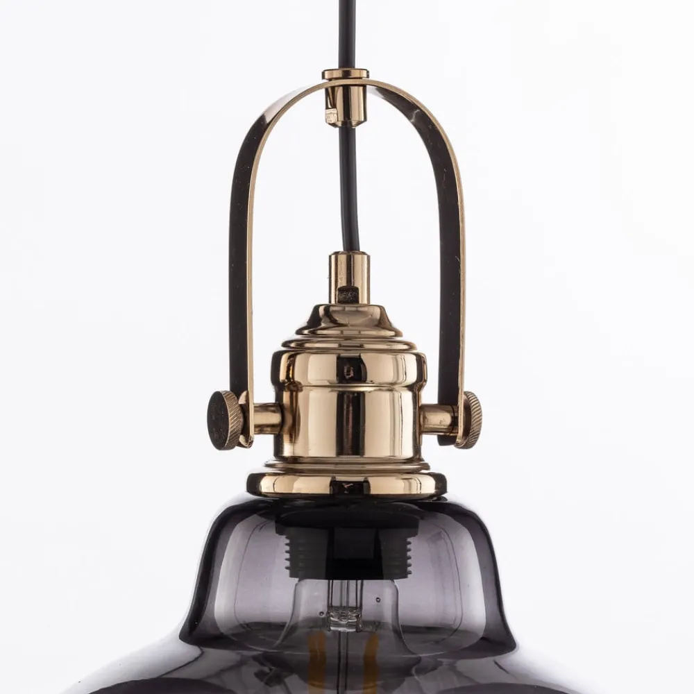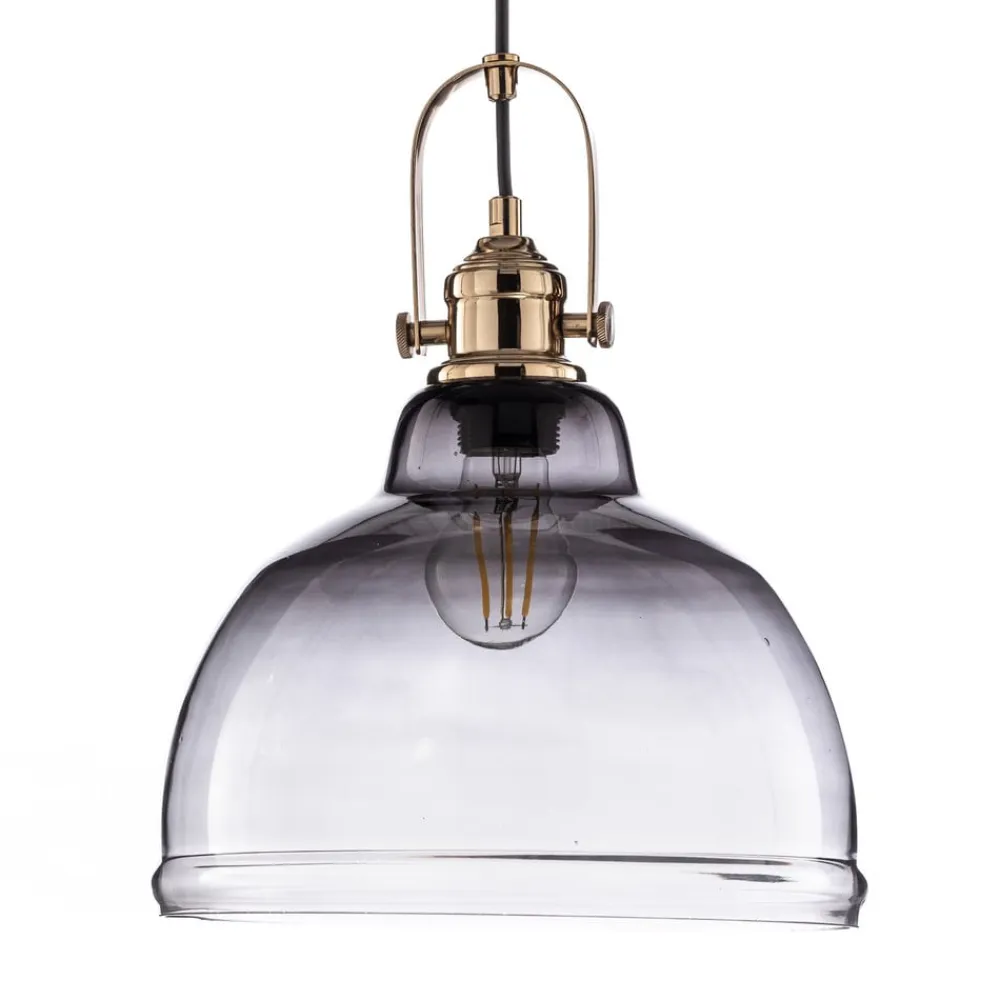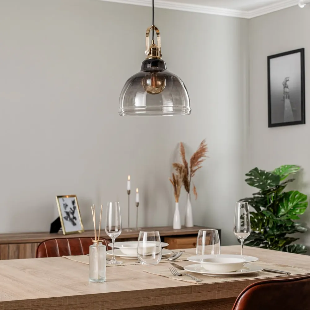Pendellampe Mago kombinerer industrielt design med en elegant farve i guld og røggrå. Fremstillet af højkvalitets metal og glas, sætter den stilfulde accenter i ethvert rum. Lampen er ideel til stuen, spisestuen og køkkenet og skaber en fascinerende atmosfære, der kan virke både beroligende og stimulerende.