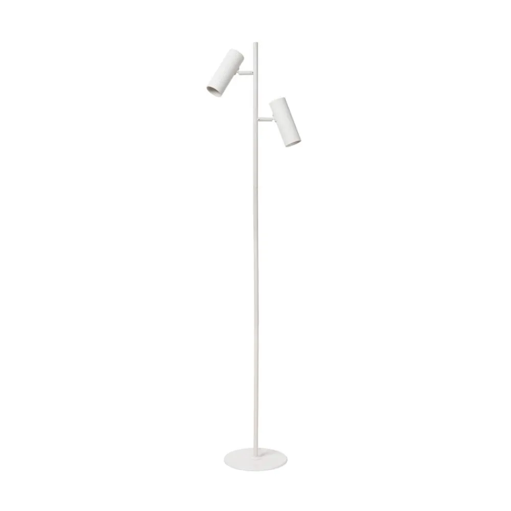 2 lyskilder gulvlampe Clubs i hvid Gulvlampen Clubs er kendetegnet ved sit yndefulde stel og diskrete detaljer. Armaturet er lavet af aluminium og er helt hvidt. Kun de to cylindriske spots, som er bevægelige, har en rillet struktur, der bryder looket. Størrelsen på den direkte lyskegle kan påvirkes afhængigt af valget af lyskilde. Takket være sin justerbarhed er Clubs ideel som læselampe