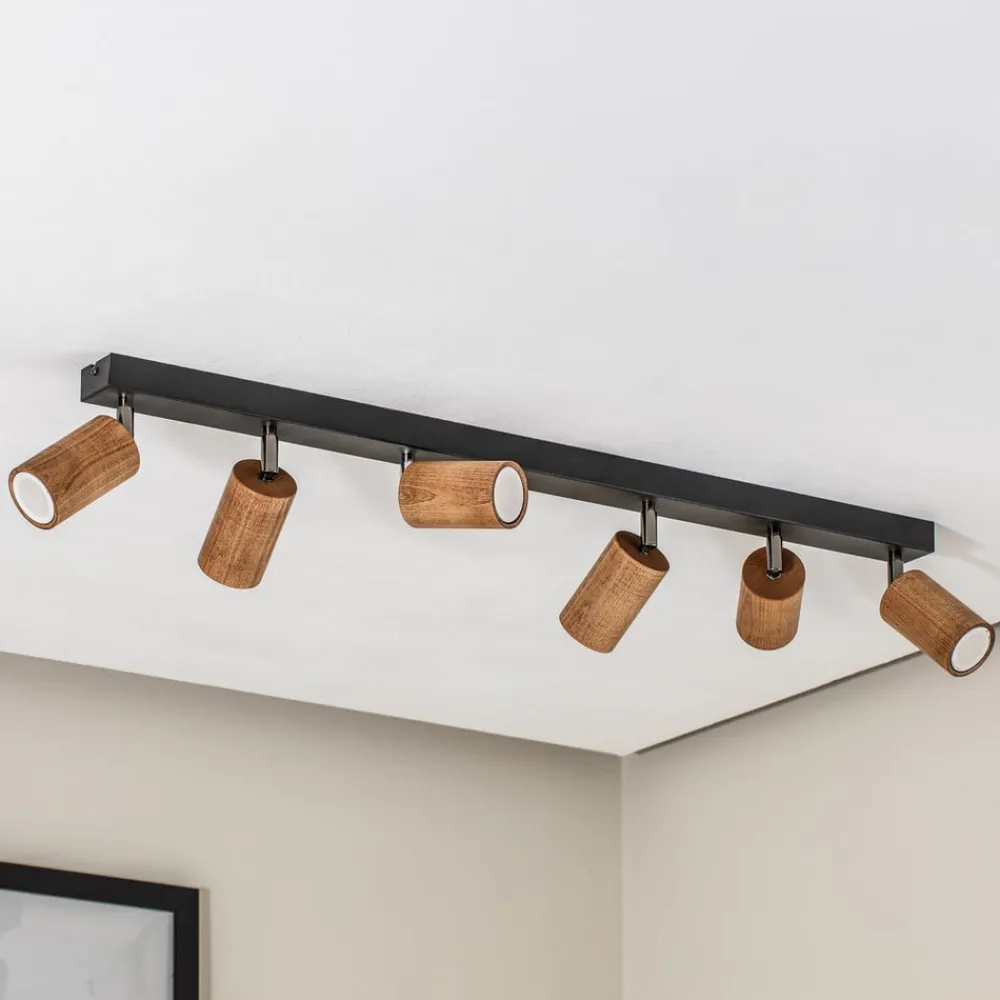 Luminex Gang|Loftlamper>Loftlampe Nise, 6 lyskilder, aflang, sort stål, træ