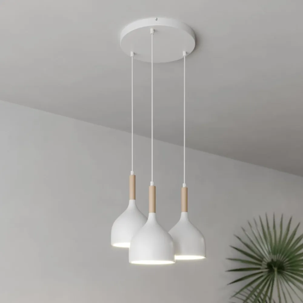 Hængelampe Noak: 3 lyskilder og naturligt trædesign