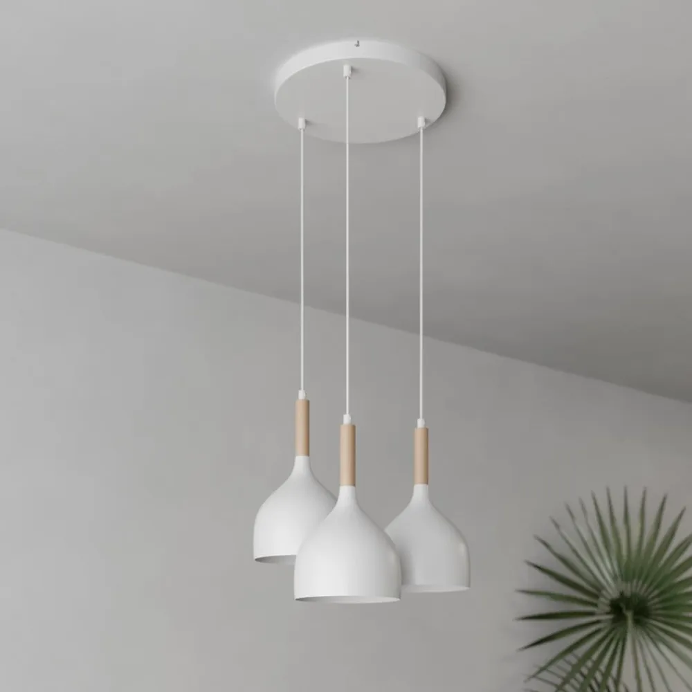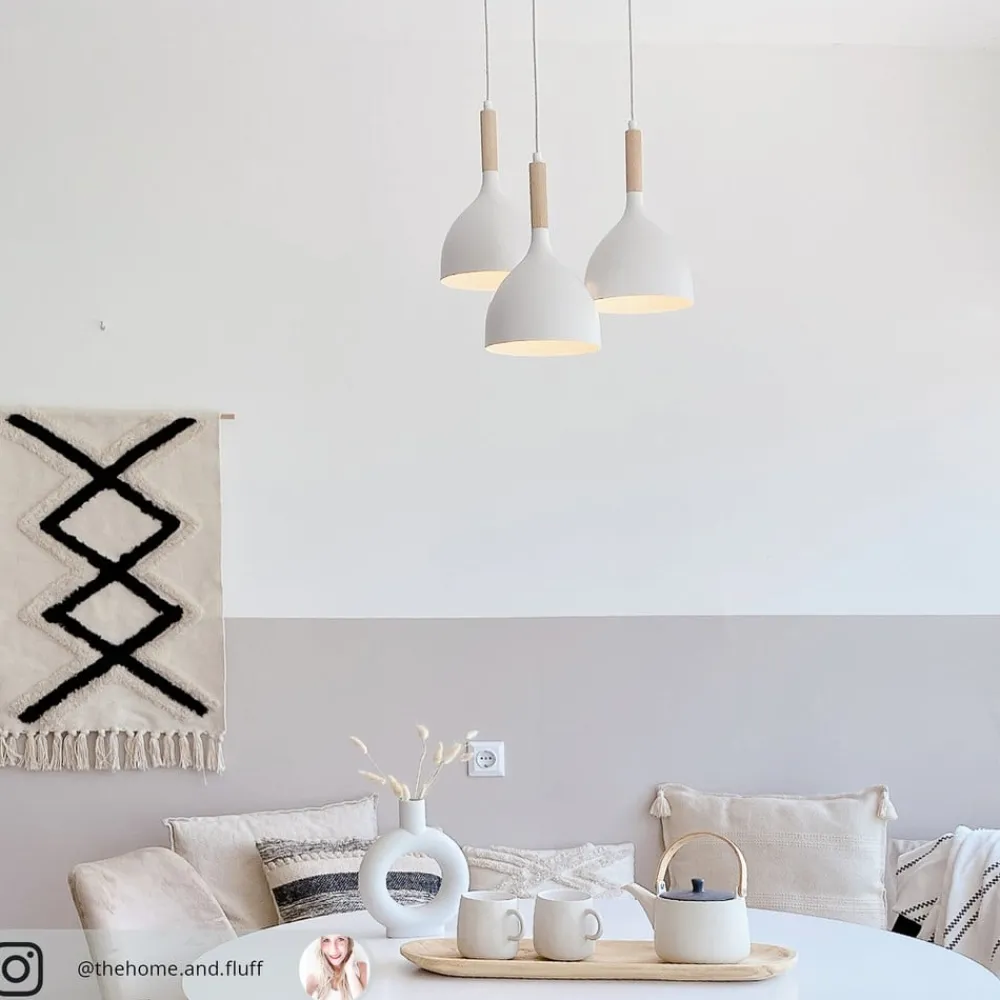 Hængelampen Noak kombinerer moderne design med naturlige elementer og sætter stilfulde accenter i ethvert rum. Kombinationen af højkvalitetsmetal og lyst træ giver lampen en tidløs elegance, der passer perfekt ind i forskellige indretningsstilarter. Med sin konstruktion med 3 lyskilder sikrer lampen en jævn og behagelig belysning, der er ideel til stuen, spisestuen eller køkkenet.