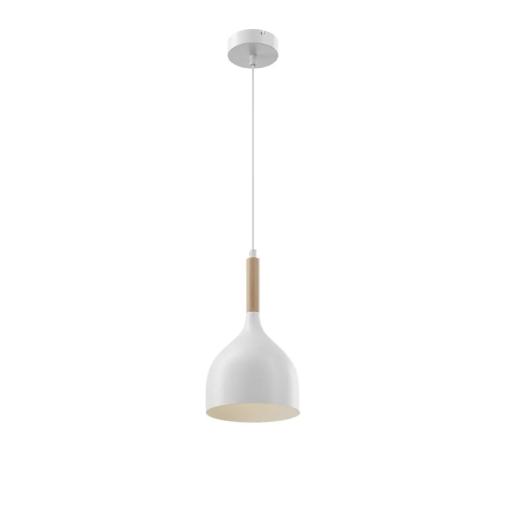 Hængelampen Noak kombinerer moderne design med naturlige materialer og sætter et stilfuldt præg i enhver rum. Lampen er fremstillet af højkvalitets metal og træ og passer perfekt ind i forskellige boligstilarter og skaber en varm og indbydende atmosfære. Kombinationen af hvid og lys træfarve giver lampen en tidløs elegance, der kommer til sin ret både i stuen, køkkenet og spisestuen.