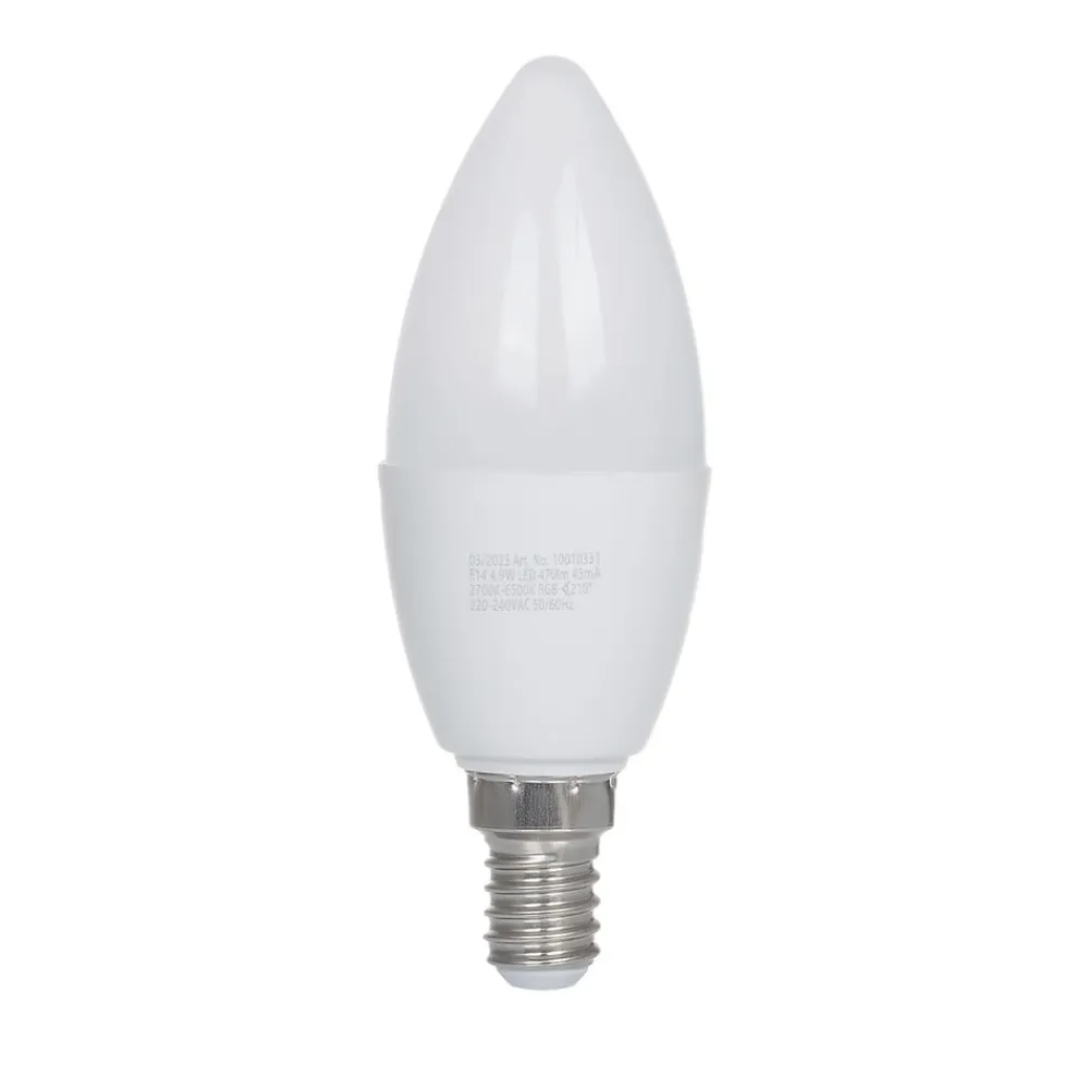 Smart styrbar LED E14-lampe med RGBW-funktion i stearinlysform, der kan styres via ZigBee, Tuya og Philips Hue Den kompakte LED-lampe har en E14-sokkel og kan integreres i et ZigBee- eller Tuya-system og styres med Philips Hue. Den praktiske RGB- og CCT-funktion muliggør fleksibel justering af lysfarven fra varm hvid (2.700 K) til dagslys (6.500 K) og generering af lys i klare farver – Strålevinkel 210° – Dæmpbar – Leveres i et praktisk sæt på 2 Lyskilderne kan også styres ved hjælp af LUUMR APP. Den findes til både Android og Apple og kan nemt downloades på https://play.google.com/store/apps/details?id=luumr.app&hl=en_US eller https://apps.apple.com/de/app/luumr/id6470302637
