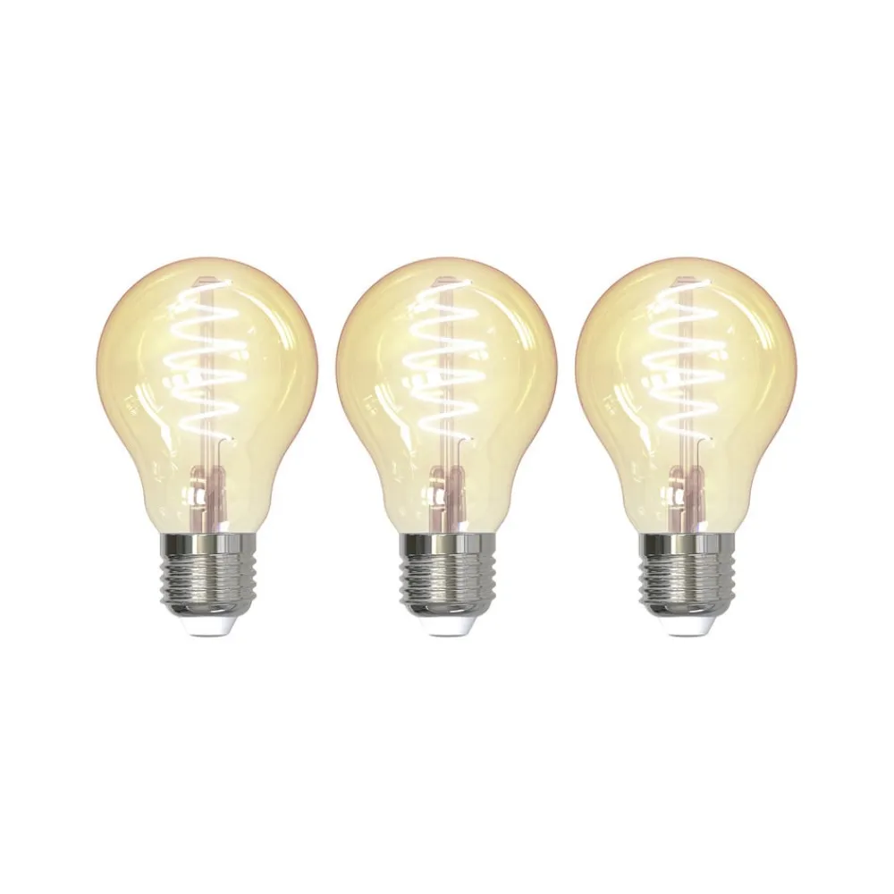 Ravfarvet LED-glødepære med E27-sokkel – kan styres med ZigBee, Tuya og Philips Hue Denne pære imponerer med sit markante udseende. Den er en glødepære og har en ravfarvet overflade. Den er særligt velegnet til armaturer, hvor der er frit udsyn til lyskilden, så lyskildens særlige design ikke går tabt. Den kan også styres via ZigBee, Tuya eller Philips Hue og giver en varm hvid (2.500 K) lysfarve – leveres i et praktisk sæt med 3 stk. Lyskilderne kan også styres med LUUMR APP. Den findes til både Android og Apple og kan nemt downloades på https://play.google.com/store/apps/details?id=luumr.app&hl=en_US eller https://apps.apple.com/de/app/luumr/id6470302637