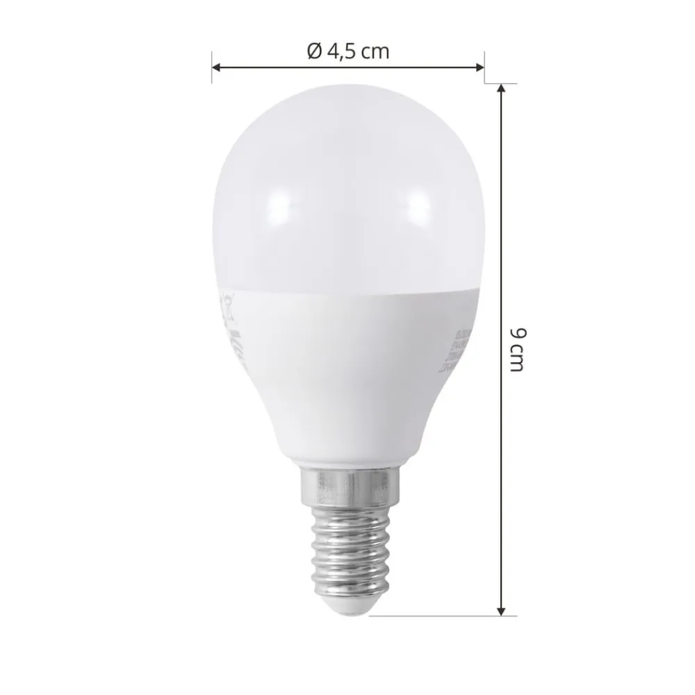 Dråbeformet pære med E14-fatning – kan integreres i WLAN, med RGBW-funktion Derudover har den en RGBW-funktion, hvilket betyder, at lysfarven kan indstilles fleksibelt mellem varmhvid (2.700 K) og dagslys (6.500 K) og kan lyse i farverige farver. Kan også betjenes via stemmestyring (Amazon Alexa eller Google Assistant).