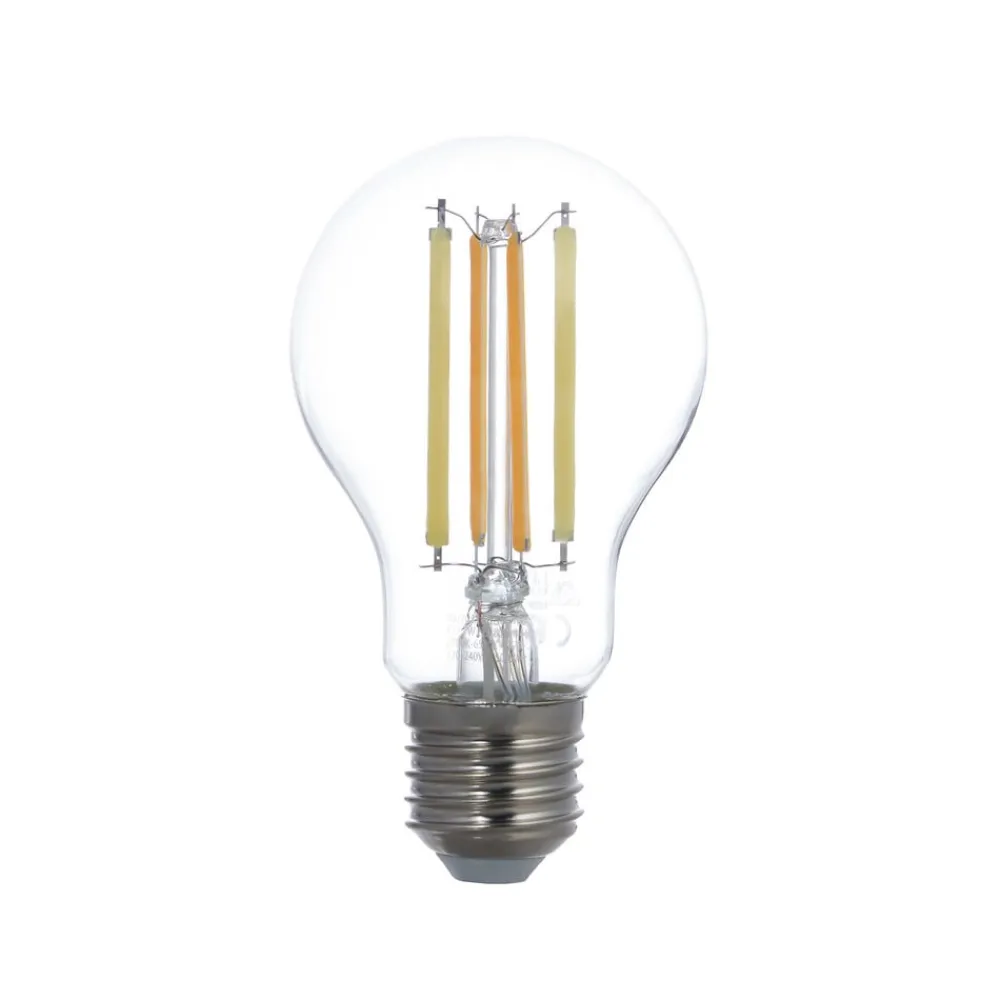 Filamentlyskilde med E27-sokkel – kan styres via ZigBee, Tuya og Philips Hue Denne lyskilde kan styres via ZigBee, Tuya eller Philips Hue og giver mulighed for fleksibel belysning. Den har en CCT-funktion og kan variere sin lysfarve fra varmhvid (2.700 K) til dagslys (6.500 K). Den har en klar overflade og det typiske udseende af en glødetrådslyskilde – Strålevinkel 320° – Dæmpbar – Leveres i et praktisk sæt på 2 Lyskilderne kan også styres ved hjælp af LUUMR APP. Den findes til både Android og Apple og kan nemt downloades på https://play.google.com/store/apps/details?id=luumr.app&hl=en_US eller https://apps.apple.com/de/app/luumr/id6470302637. Bemærk, at der kræves en ZigBee Smart Hub for at bruge pærens intelligente funktioner. ZigBee-hubben kan derefter programmeres i overensstemmelse hermed i Tuya-appen eller LUUMR-appen.