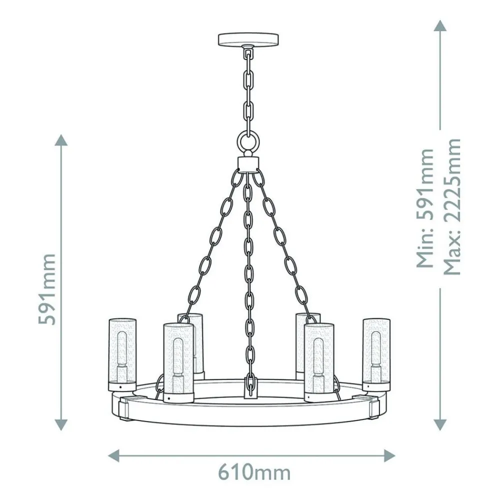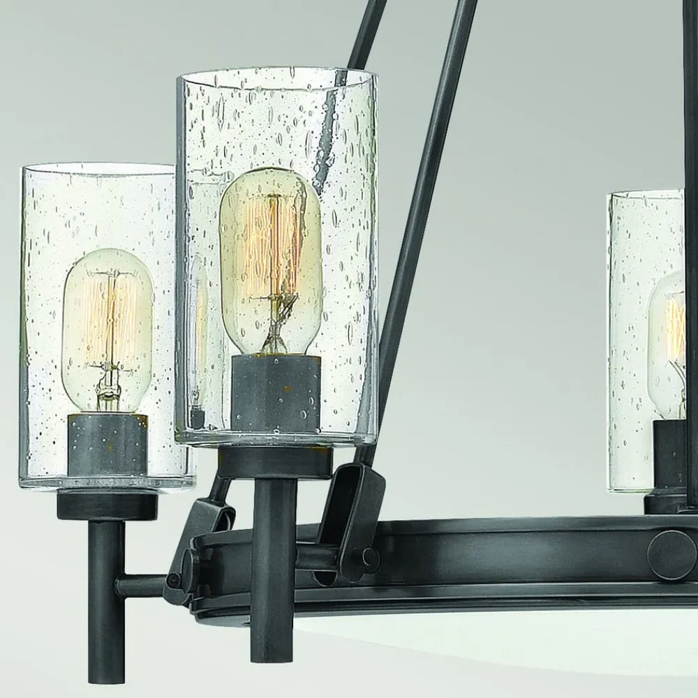 Den sorte finish på stålrammen og de cylindriske lampeskærme, der med deres uregelmæssigheder og luftbobler i glasset fremstår særligt dekorative og stilfulde, giver den 5-flammede lysekrone Collier et vidunderligt antikt og lige så elegant look, der kommer særligt godt til sin ret i stuer indrettet i antik stil. Lyset stråler ud i alle retninger gennem de cylinderformede, transparente lampeskærme, hvilket skaber en effektfuld belysning og et smukt lysbillede i rummet. I de transparente glas ser såkaldte vintage-pærer med glødetrådsteknik eller glødetrådslook særligt smukke ud.