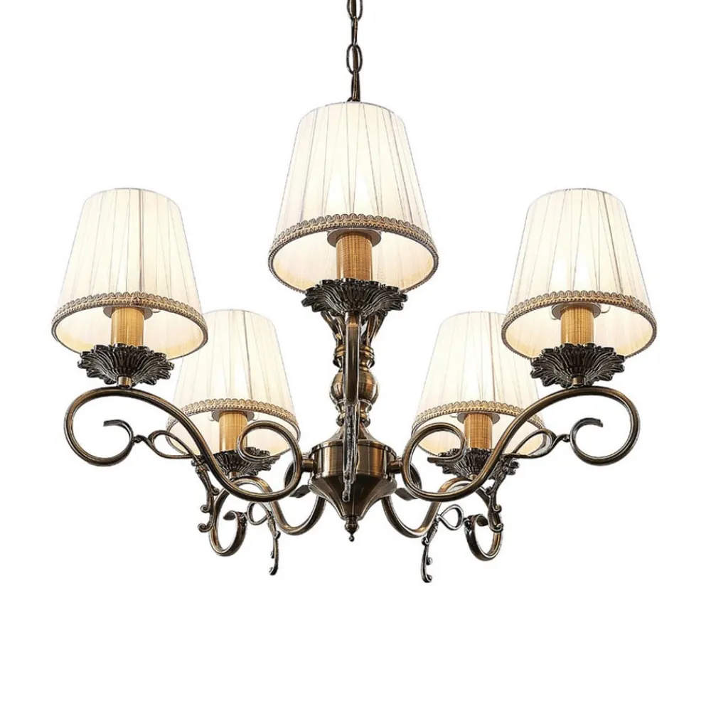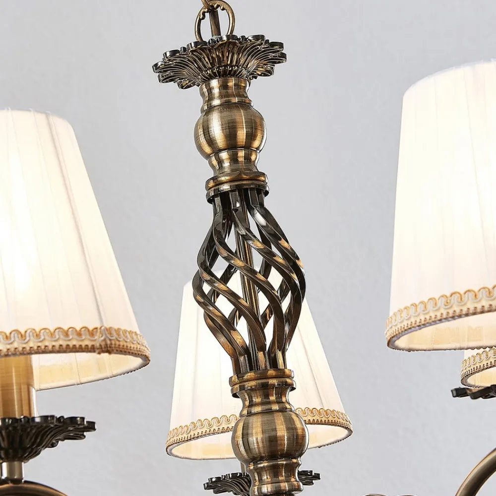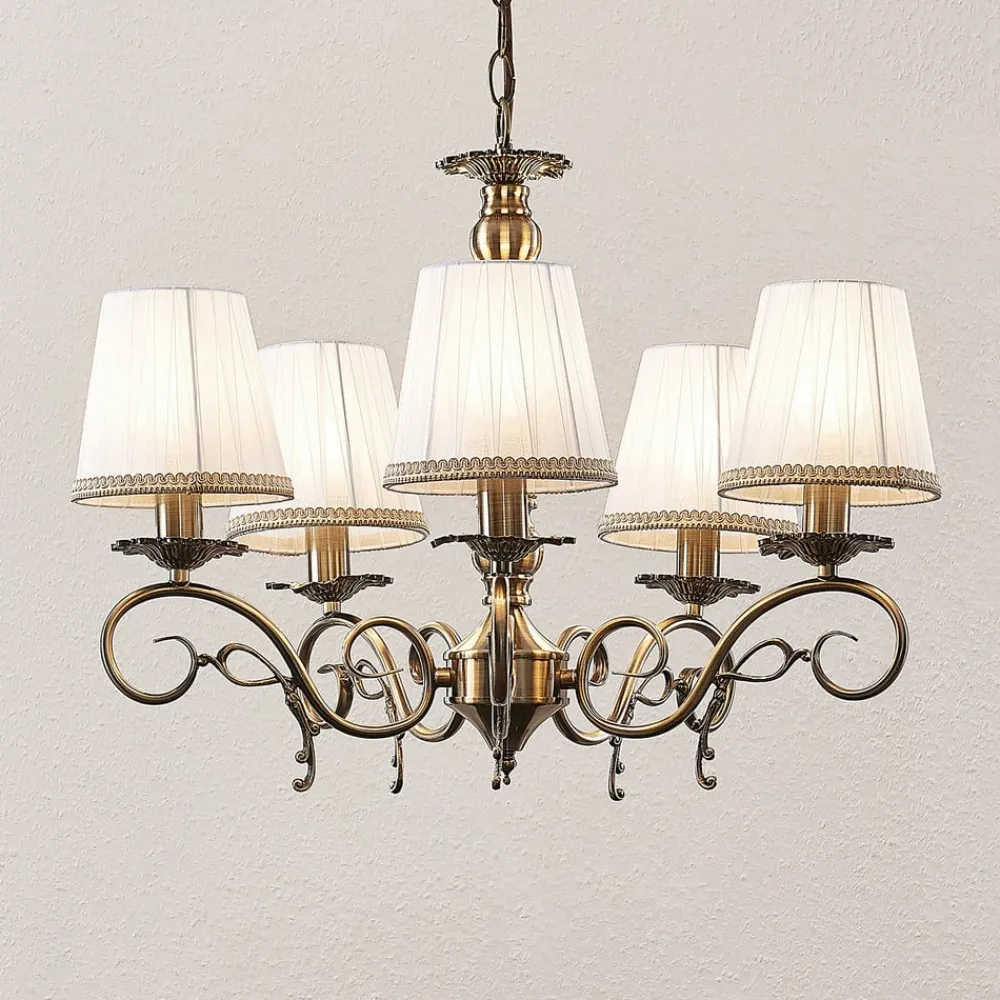Lindby lysekrone Finnick, antik messingfarve, 5 lyskilder, E14