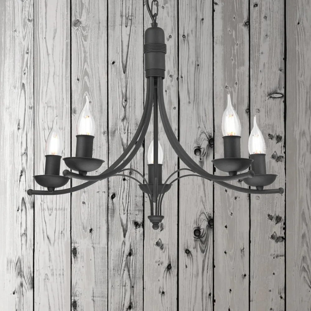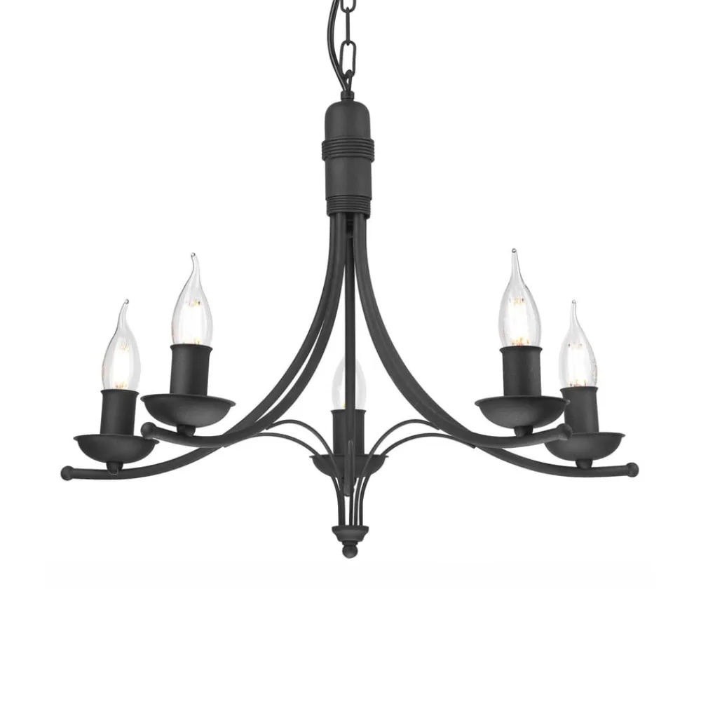 Lysekrone Kandela med 5 lyskilder er et stilfuldt highlight i ethvert moderne interiør. Fremstillet af højkvalitetsstål og holdt i elegant sort passer dette belysningsobjekt perfekt ind i entreer, stuer og spisestuer. De klare linjer og det moderne design understreger den moderne stil og sætter imponerende accenter.