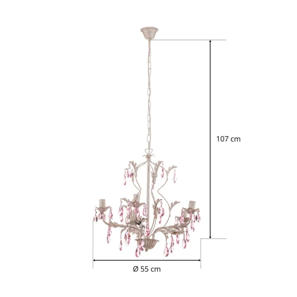 Lysekrone Kate forener klassisk design med moderne accenter og bringer dermed en tidløs elegance ind i ethvert rum. Fremstillet af højkvalitets jern og dekoreret med funklende K9-krystalglas stråler denne lysekrone med 5 lyskilder i et harmonisk samspil mellem hvid, klar og rosé. De nøje udvalgte materialer og den udsøgte finish gør den til et højdepunkt i stuen, spisestuen eller køkkenet.
