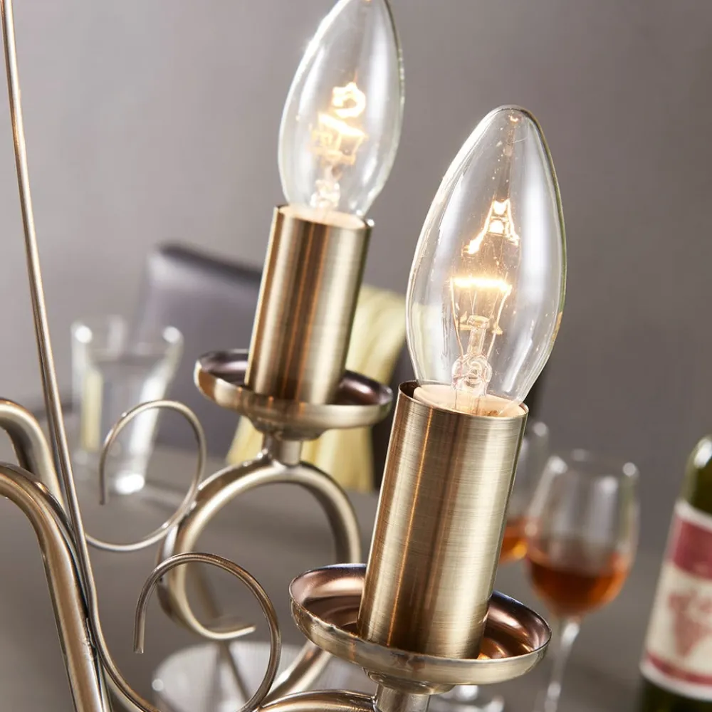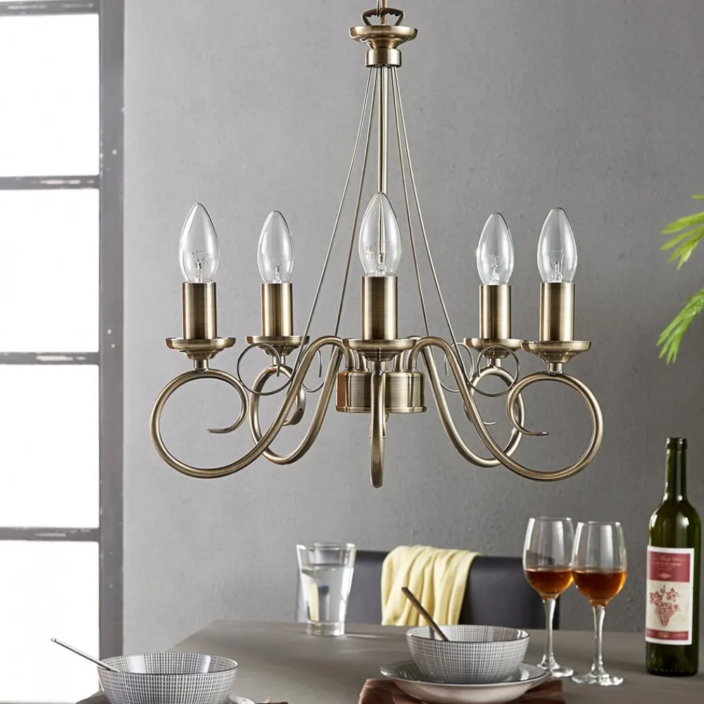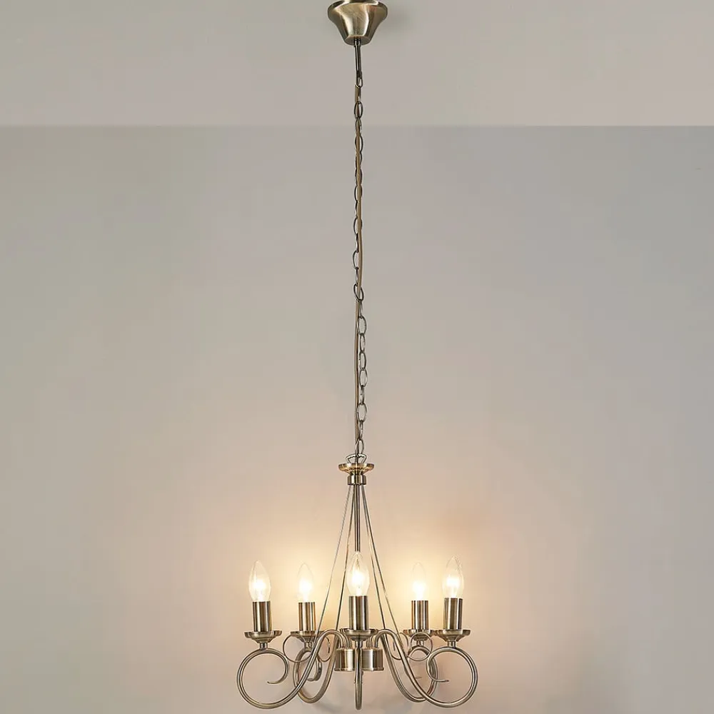 lysekrone Marnia, 5 lyskilder, Ø 40 cm, antik messing, E14^Lindby Hot